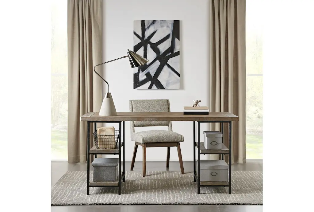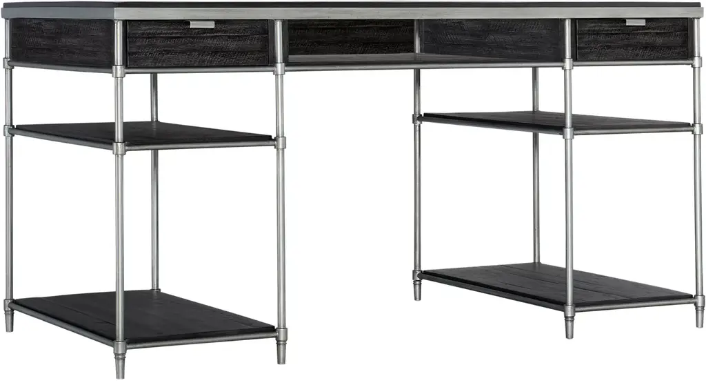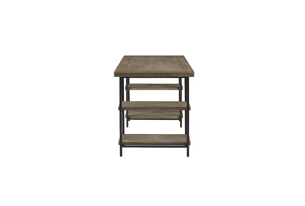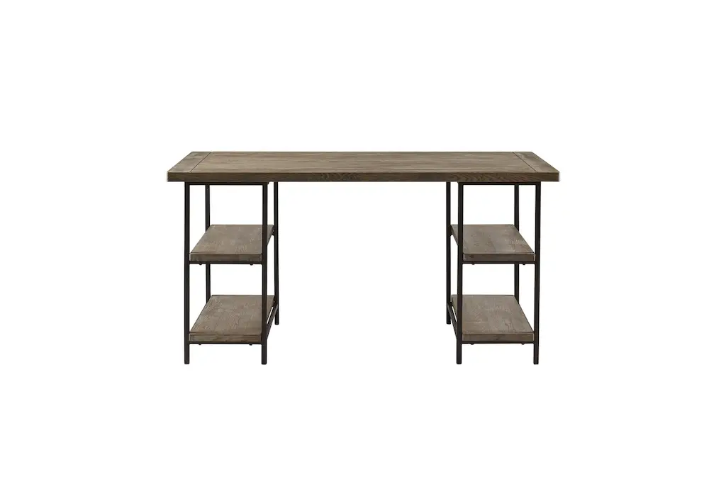 This Circa Grey 60" computer desk is a casual style piece perfect for any home office. The desk features a wood top made of reclaimed grey engineered wood with a metal frame. Assembly is required for this grey desk.