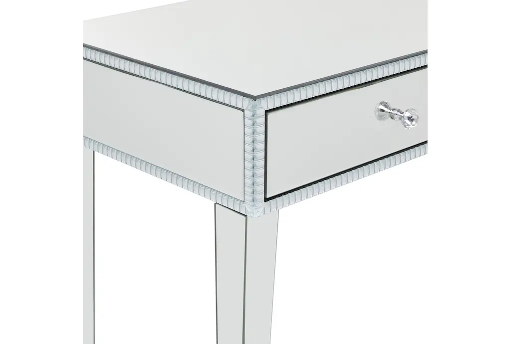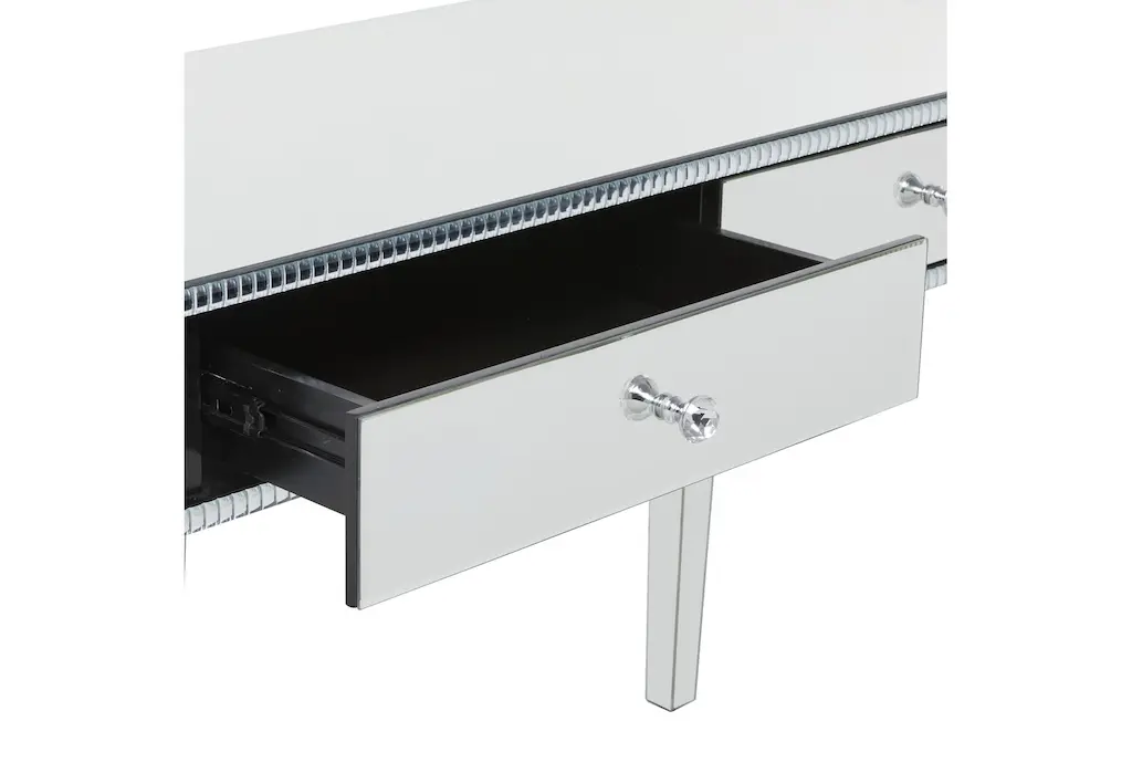 Clarissa Silver Glam 43" Mirrored Writing Desk With 2 Drawer Storage