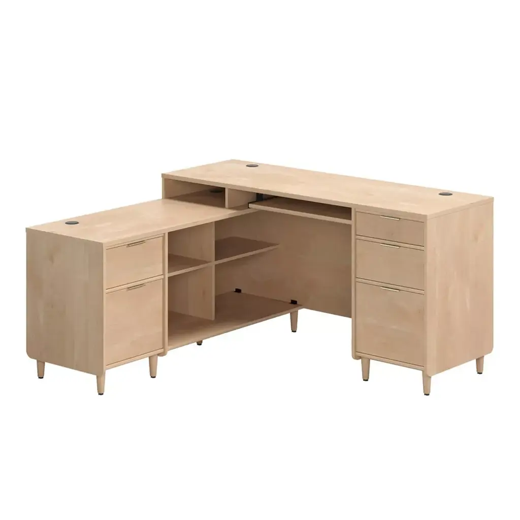 Clifford Place L-shaped Desk Natural Maple - Sauder: Executive Workstation With File Storage & Cubbyholes