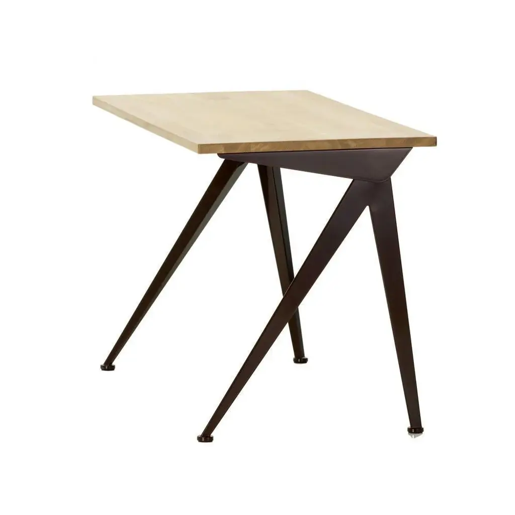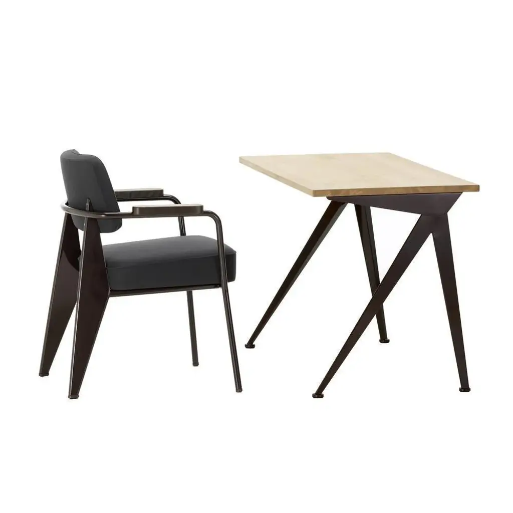 The slender, elegantly splayed metal legs of the Compas Direction desk by Jean Prouve call to mind the hinged arms of a compass – ‘le compas' in French. Their design is based on engineering principles that typify the structural approach of the French designer and engineer. Paired with the oiled solid wood table tops, they form a richly contrasting mix of materials in the home office.