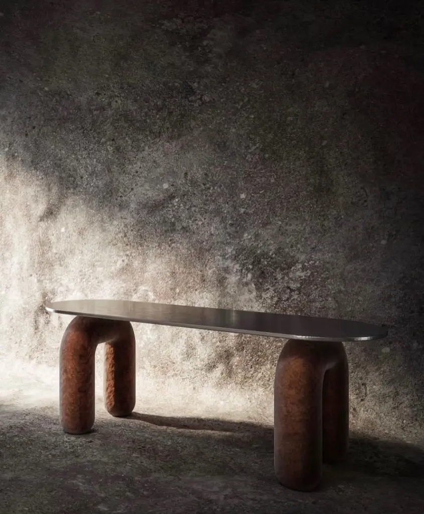 Lavinia desk by Pietro FranceschiniMaterials: Mohair velvetDimensions: W 210 x L 71 x H 78 cm.Designed during a creative momentum in the relaxed Italian Riviera Ligure, our new Urania collection brings playfulness and longing for those innocent days of our childhood. The soft lines and upholstered curves continue our research on Neotenic Design and Sculptural Furniture. What emerges is fluidity, innocence, sensuality and the frisky feminine and masculine. The modularity inspired by the Classic DS-600 is reinterpreted with a fresh and current touch which makes Urania an instant iconic series. The pieces are locally manufactured in Milan and come in two versions: a unique ‘pleated version’ for the launch in Mexico City during the Transatlantico exhibition by Galerie Philia and a minimal and sleek version for the following production.Pietro FranceschiniArchitect // designerPietro Franceschini is an architect and designer based in New York and Florence. He was educated in Italy, Portugal and United States. After receiving his B.Arch cum laude from Università degli Studi di Firenze and his M.S.Arch with 1st class honour from Pratt Institute, he collaborated among others with Leeser Architecture in Brooklyn, Claudio Nardi in Florence, Laisné Roussel in Paris and Carlo Ratti Associati in New York. His latest project - PFStudio - was born as an interior and furniture design practice.