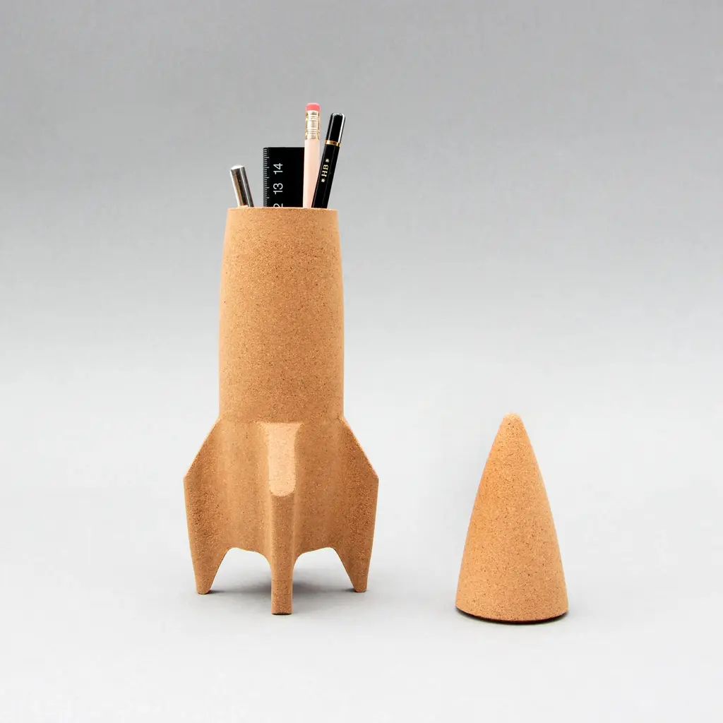 Classic and iconic rocket design made from cork. Hollow with removable nose cone. Stash your pens and declutter your desk space. Plus, because it’s made from cork you can pin notes, pictures of loved ones, or simply store pins on the outside. This product is made entirely from cork Cork is 100% natural, recyclable, biodegradable, sustainable and completely environmentally friendly. Cork comes from the Cork Oak tree. The trees live for hundreds of years and the cork outer layer is harvested every 9 years. Harvesting is 100% safe for the tree, which is not harmed in any way and continues to grow.