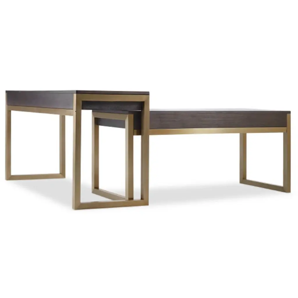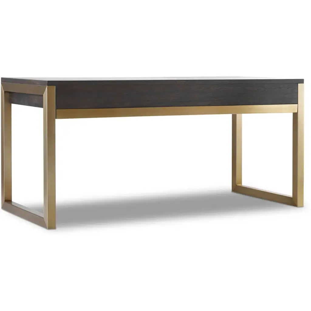 With an eclectic mix of a rustic white oak veneer desktop in a deep brown midnight finish and a brushed brass base, you can create a curated chic modern look in your office or family room space. Two drawers are offered with a drop-front for keyboard use. This versatile modern desk can be used free-standing or as a left or right-hand desk in an L-configuration. Create a curated chic modern look with an eclectic mix of sophisticated materials and finishes in the Curata Collection. Curata, meaning "curated" in Italian, mixes materials like black nickel, stainless brushed brass, and marble with three distinct rustic modern finishes for a simple, yet urbane design. Inspired by timeless shapes and chic materials, Curata exudes a "less is more" feel by spotlighting the design of each piece and giving precise attention to detail.