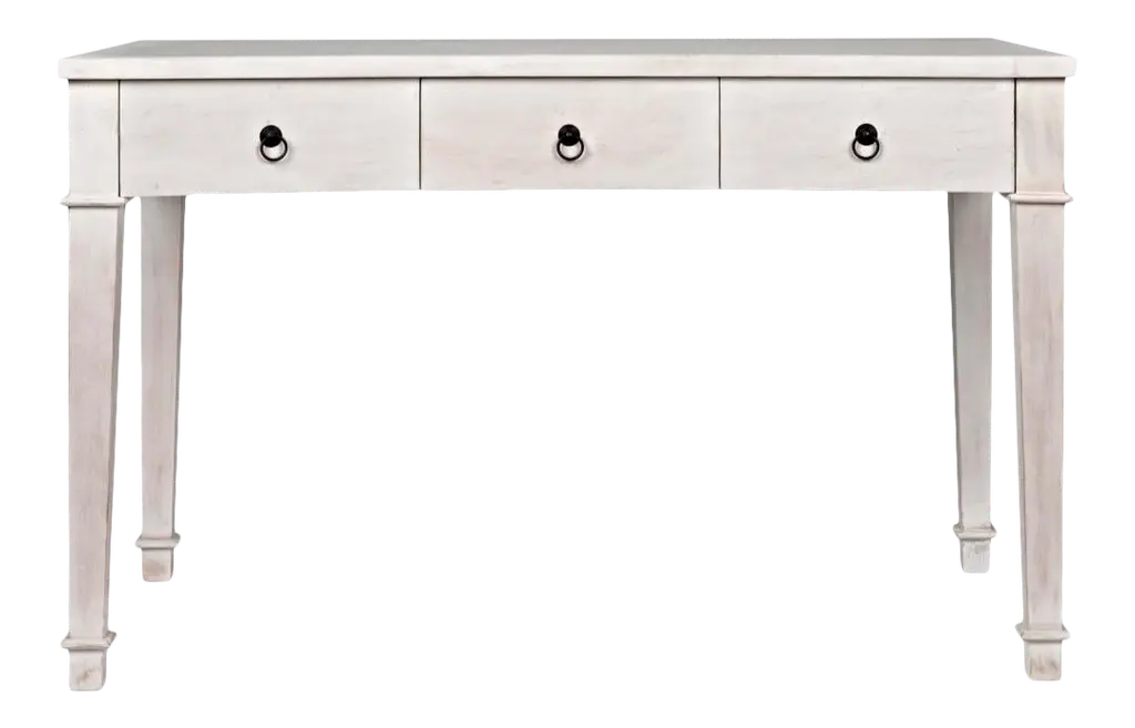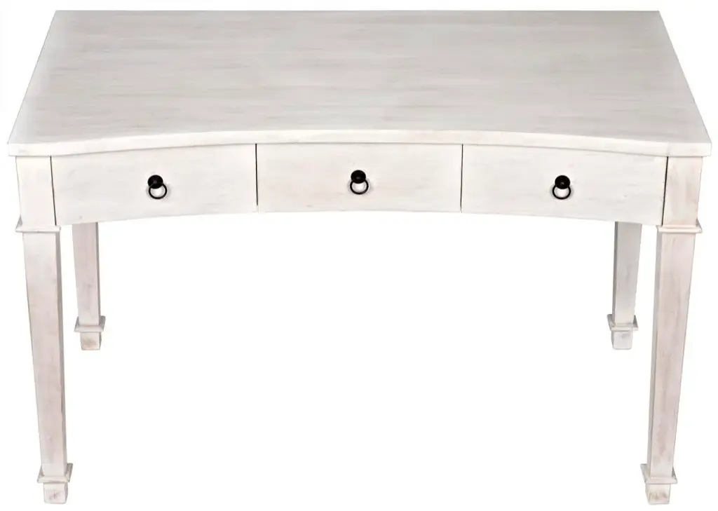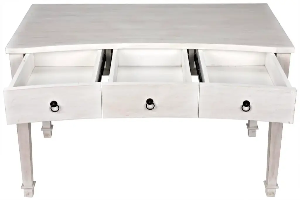 Inspired by the curves of the human body, this seemingly simple desk has been handcrafted of solid mahogany. Available in two hand-applied finishes, each has three drawers to keep your essentials close, and each features coordinating metal hardware.