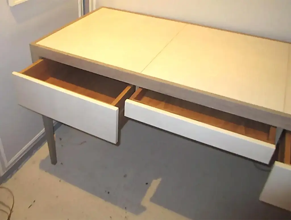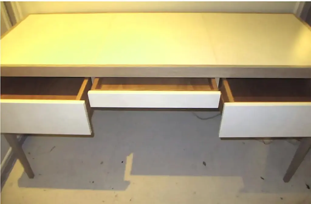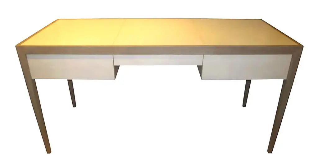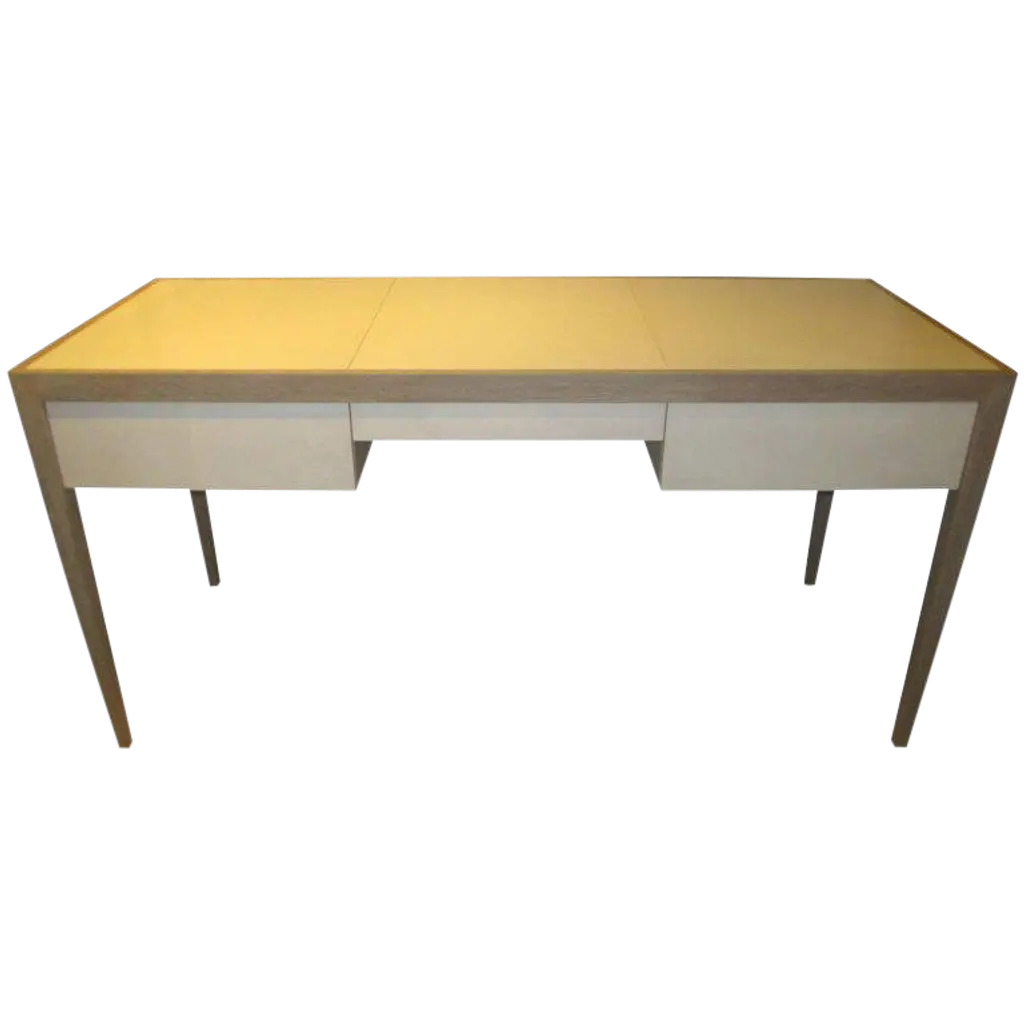 Custom cerused oak and parchment desk featuring three central drawers.Note the lead time for custom made is 8-12 weeks.