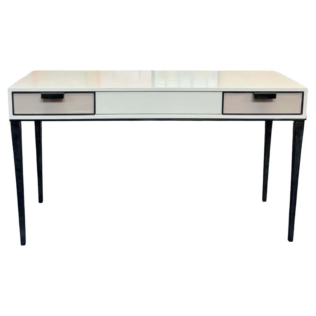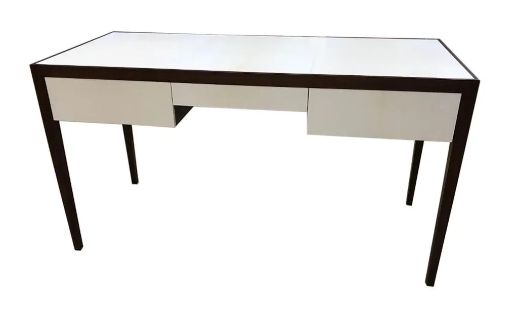 Custom parchment and mahogany writing desk. This desk is custom made. It can be crafted in your choice of wood and finish, mahogany, cerused oak, parchment top, shagreen etc. Lead Time is 8-12 weeks.