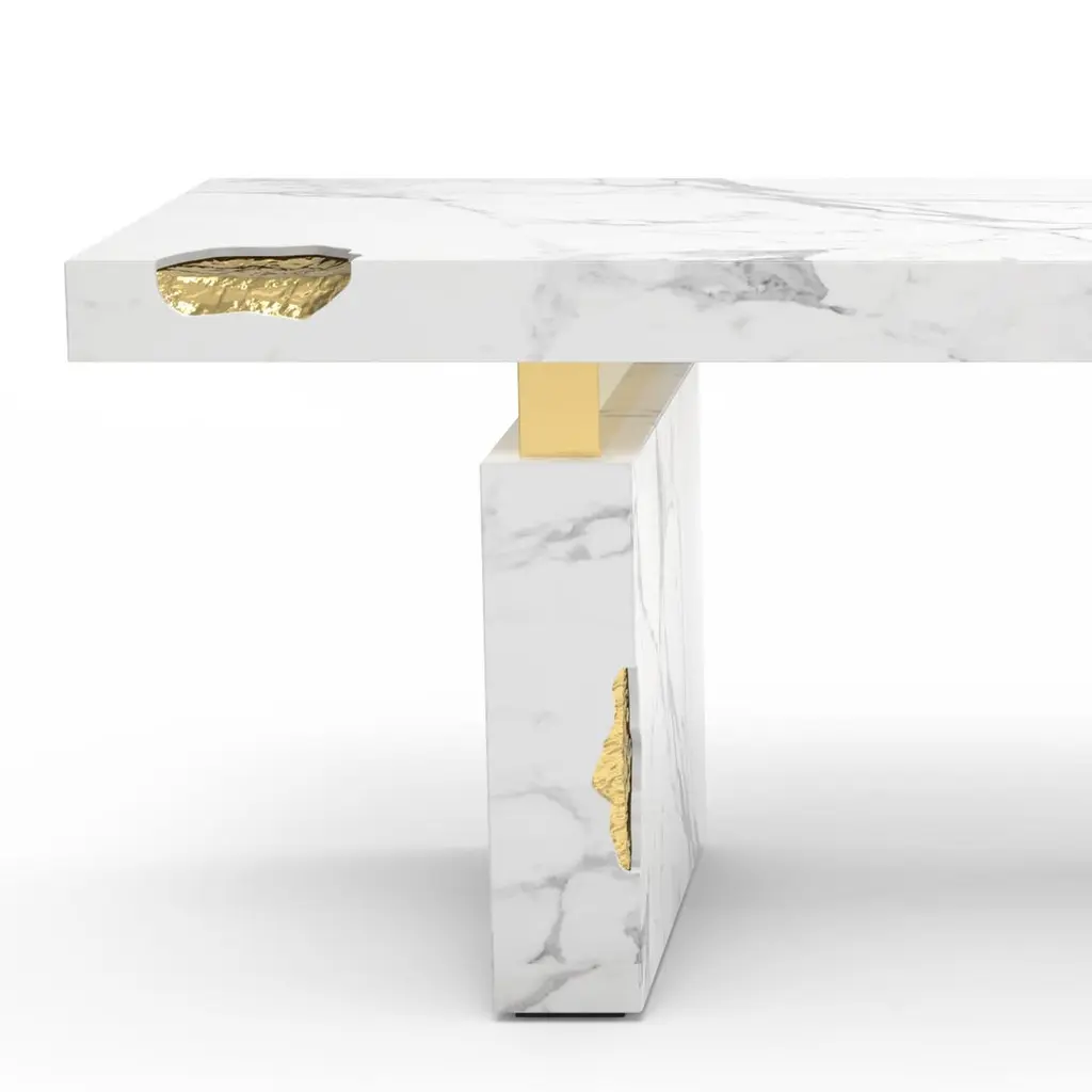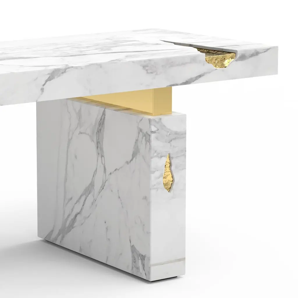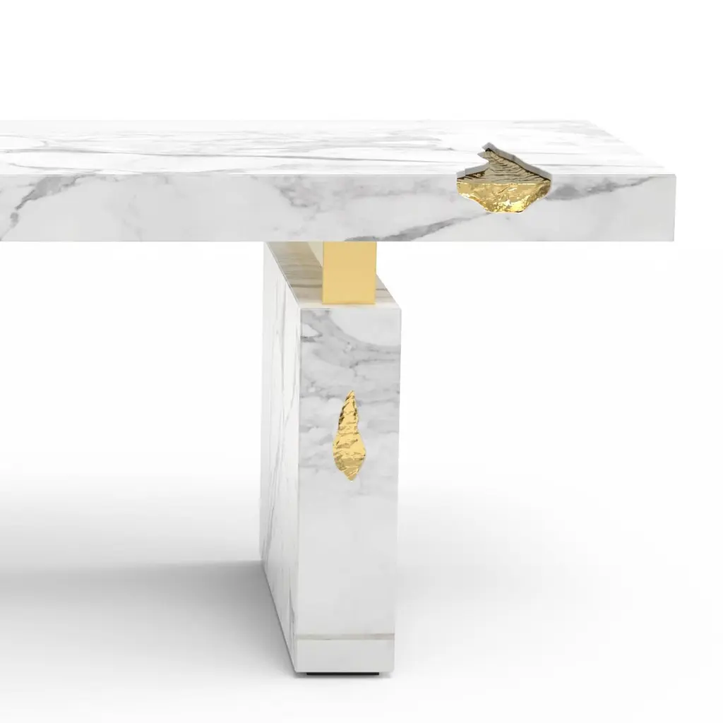 Desk majestic white with 2 bases and top in solidpolished Estremoz white marble with solid brass details in gold finish.