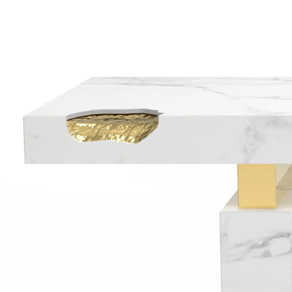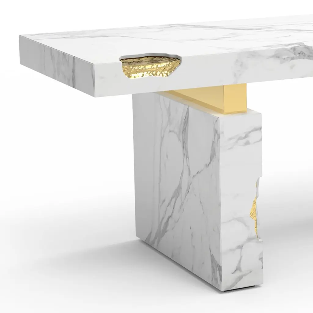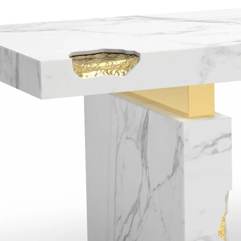 Desk majestic white with 2 bases and top in solidpolished Estremoz white marble with solid brass details in gold finish.