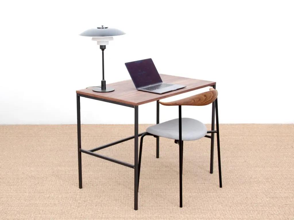 Desk model Cosmopol large walnut top, base in solid steel, calamined and waxed. Apparent welds. Can be manufactured to measure: extra cost: + €150.