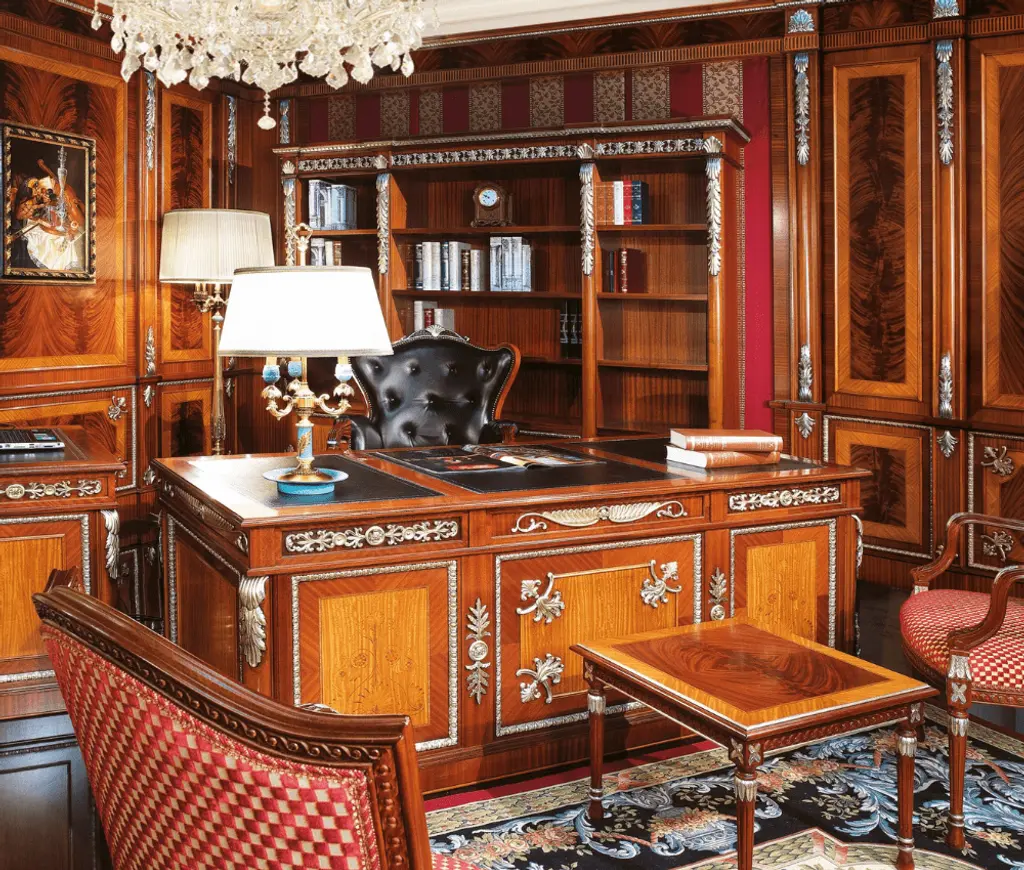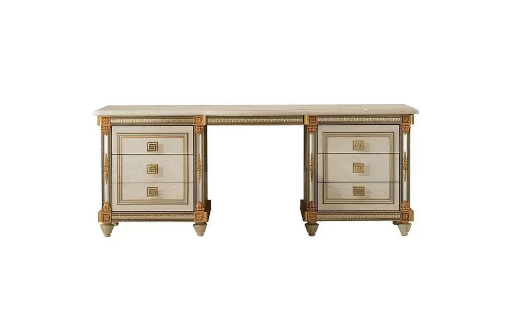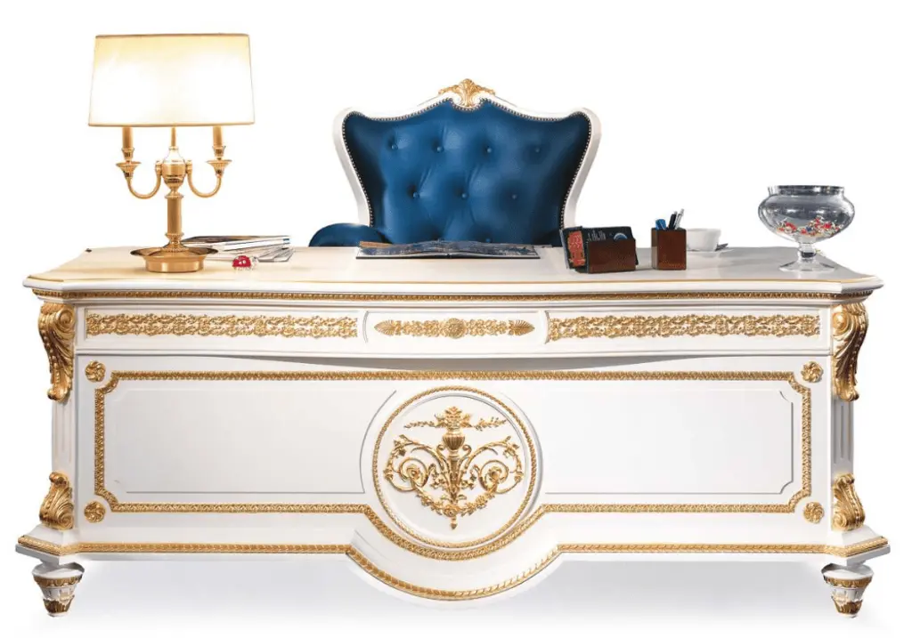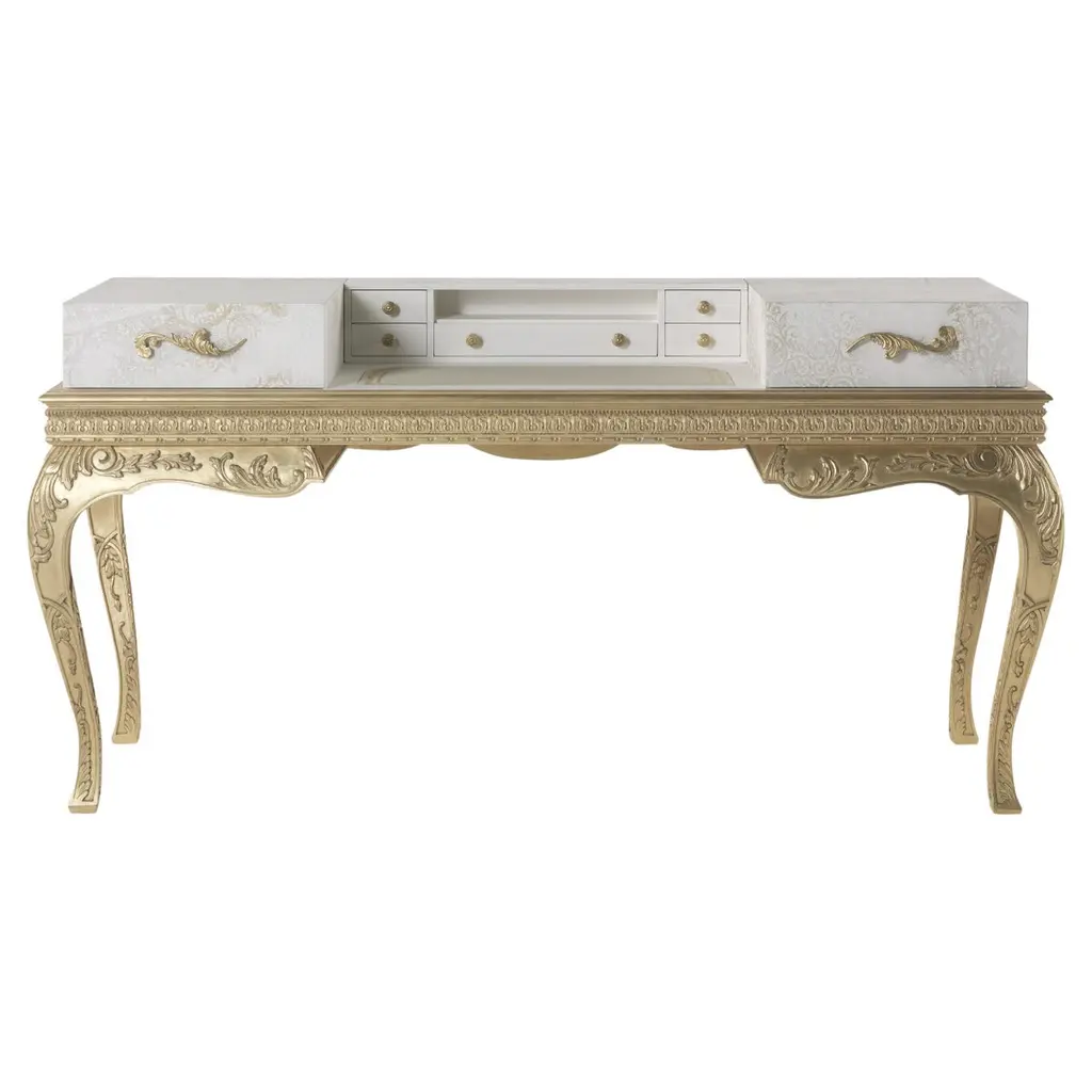 The Italian Hand Crafted Desk, Oriaco Collection, by Carlo Asnaghi is a stunning piece of furniture designed for those who appreciate a luxurious and sophisticated style. The desk is crafted using high-quality materials such as wood and metal and features a unique and eye-catching design that combines elegance with functionality.The desk’s tabletop is made of a smooth, high-gloss lacquered finish that creates a luxurious feel and reflects light beautifully, making it a statement piece in any room. The desk also features a metal base with a unique and intricate design that adds to its overall elegance and visual appeal.The Oriaco Collection desk is designed to provide ample workspace and storage options, making it perfect for home offices or workspaces. The desk has several drawers that provide plenty of storage space for office essentials, such as files, stationery, and paperwork.Overall, the Desk, Oriaco Collection, by Carlo Asnaghi is a beautiful and functional piece of furniture that will elevate the style and functionality of any workspace. Its unique and luxurious design, combined with its high-quality materials and ample storage space, make it an excellent choice for those looking to create a sophisticated and stylish workspace.200x100x82h Shop All Carlo Asnaghi Italian Furniture by Catalog