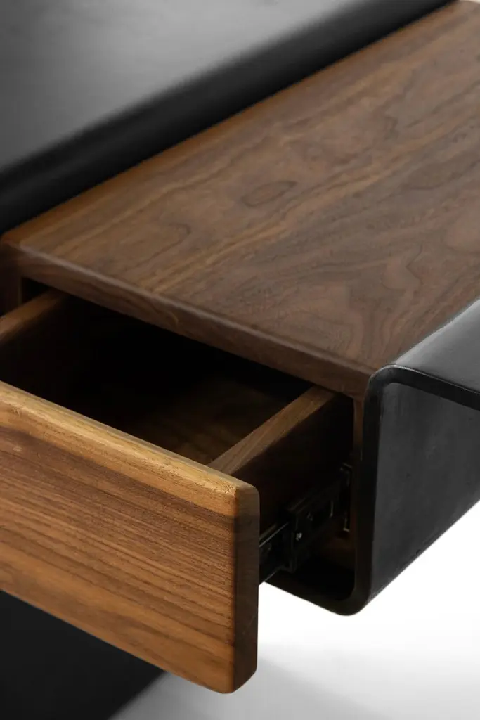 Desk With Vanity Organic Modern Contemporary Blackened Steel And Walnut Drawer