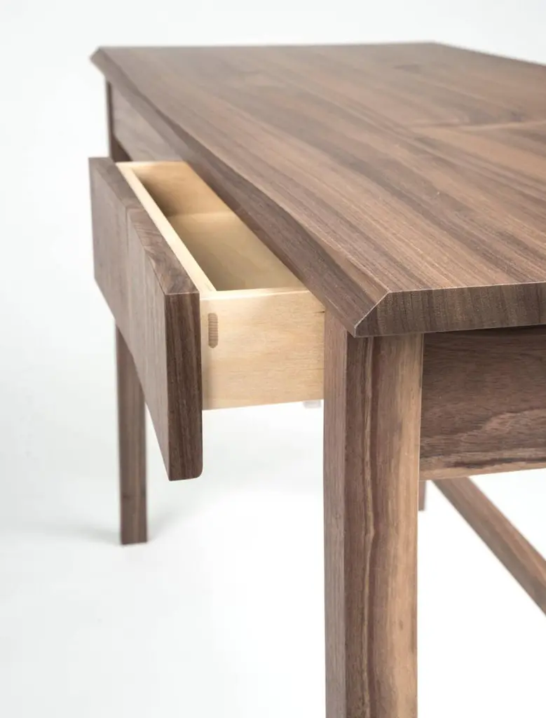 Hardwood, modern desk or writing table for your home or office.The lead time provided is an estimate and may extend up to 12 months. If you require delivery by a specific date, we kindly recommend inquiring prior to purchase to ensure availability.The timeless lines and subtle tapers of this desk will have you looking forward to sitting down for work. The writing desk is available in your choice of left side, right side or full size drawer.