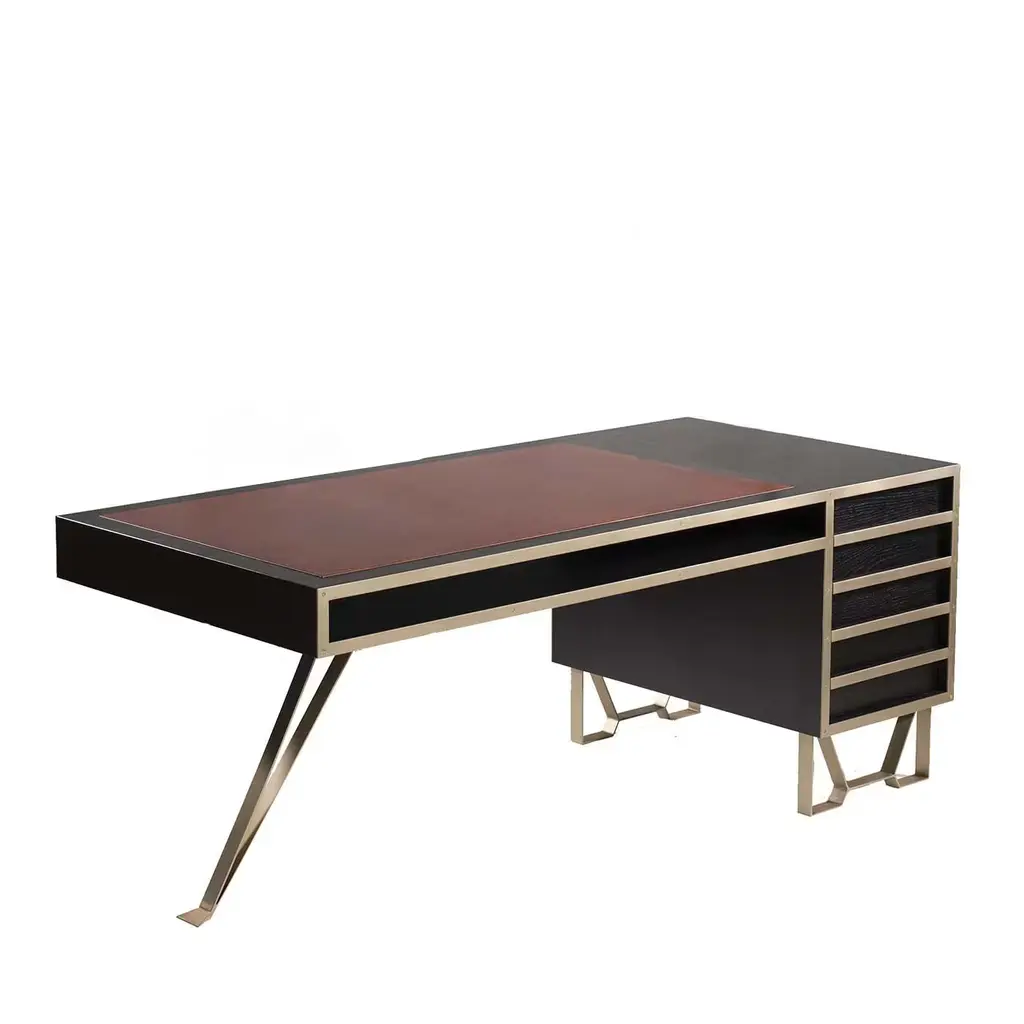 Diamond Desk With Quilted Leather And Bronzed Metal Base