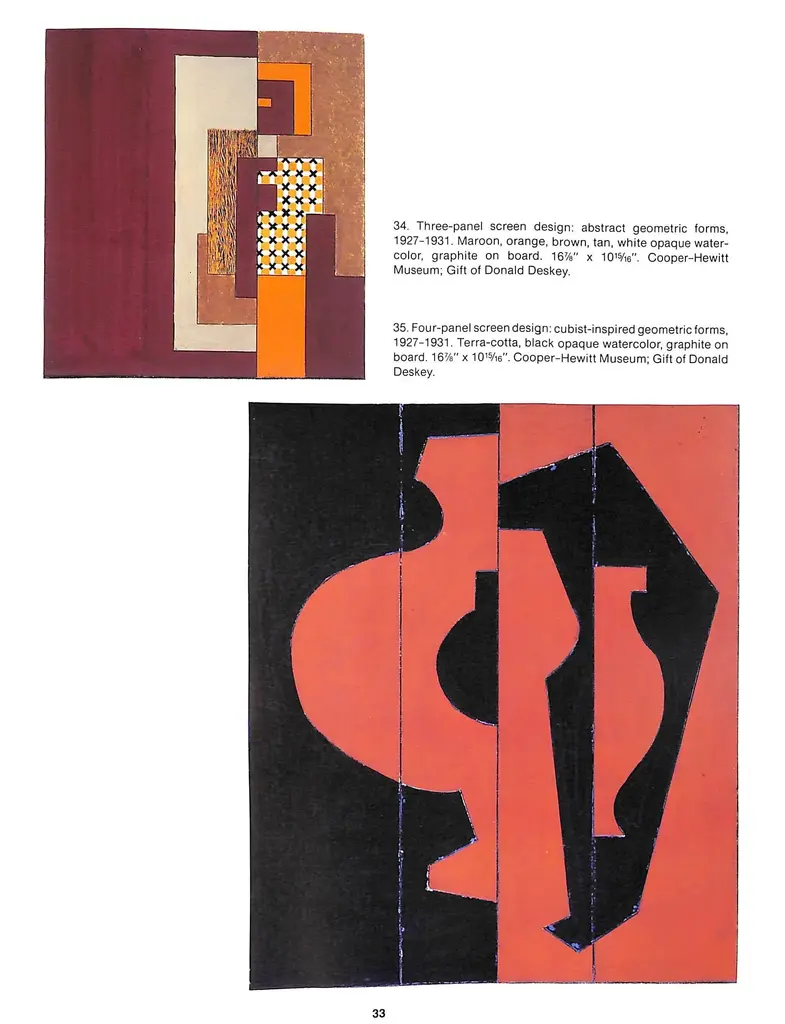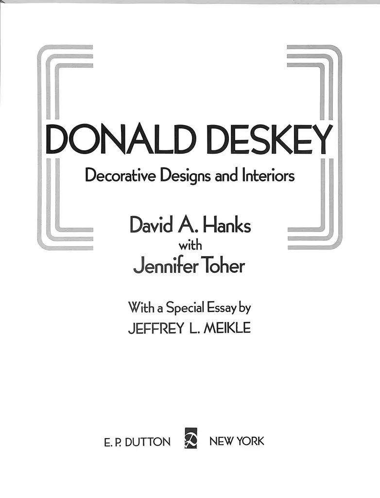 HANKS, David A. with TOHER, Jennifer [214] pp. E.P. Dutton 1987 First Edition 11 3/8" x 9" Donald Sidney Deskey (November 23, 1894 – April 29, 1989) was an American industrial designer. Donald Deskey Decorative Designs and Interiors contains over 200 period photographs and drawings selected from the Deskey Archives, and it will prove an essential reference for all those interested in the decorative arts and industrial design of the twentieth century.