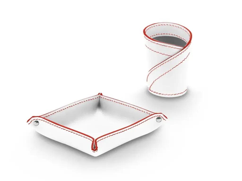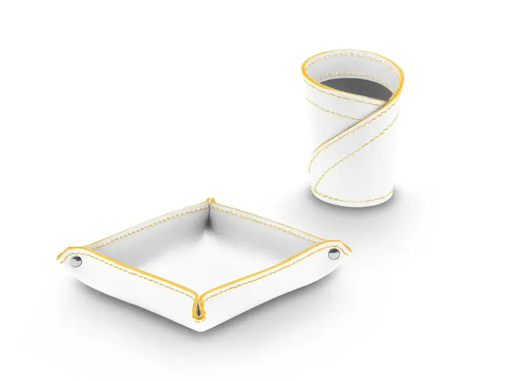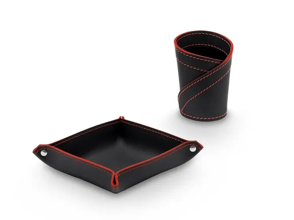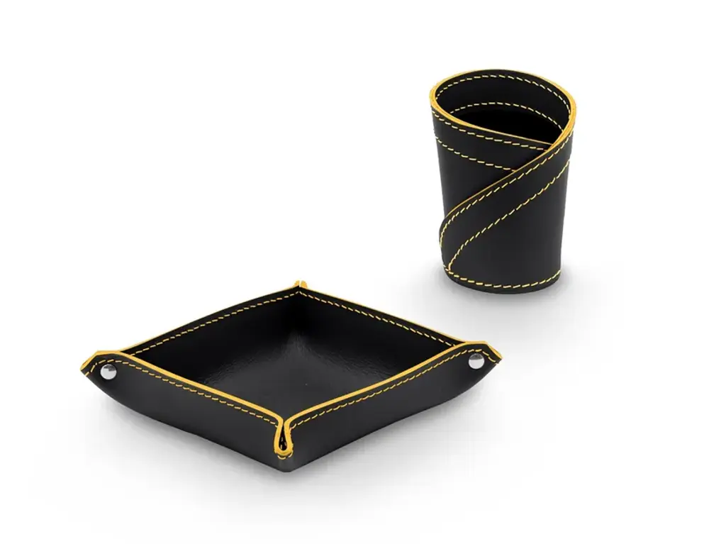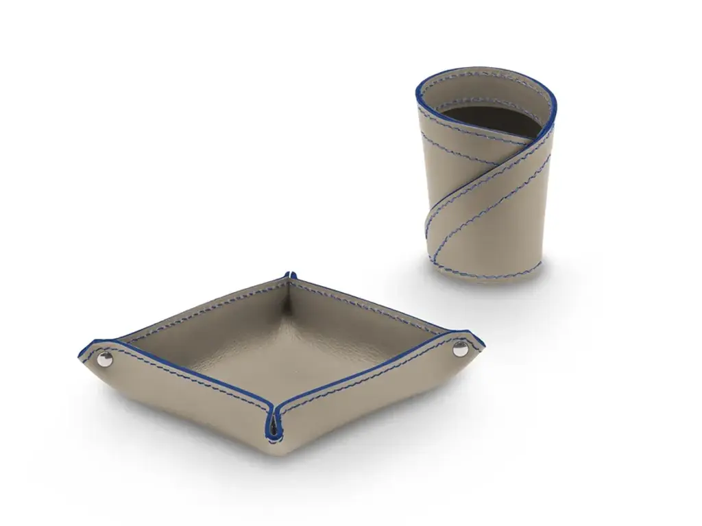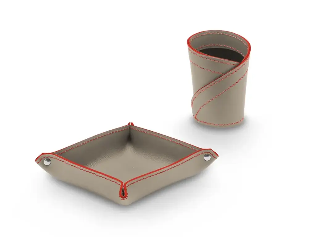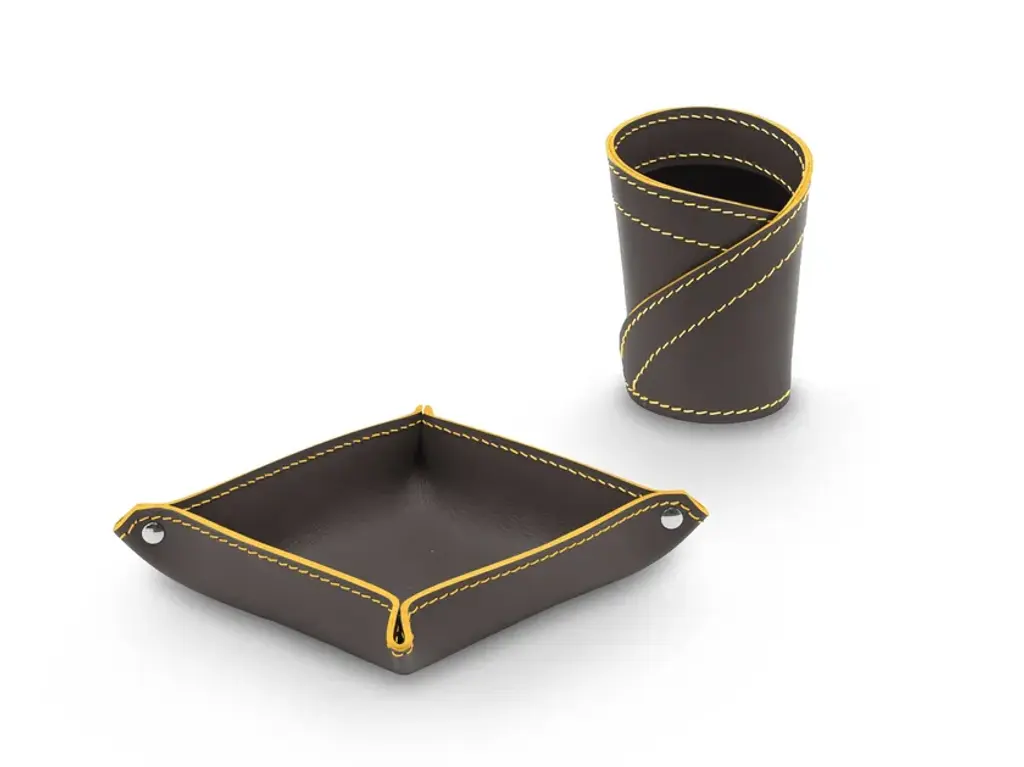 Donio Color is a set for desk in regerated leather. Consist of a pen holder and a object holder mod. Ascanio