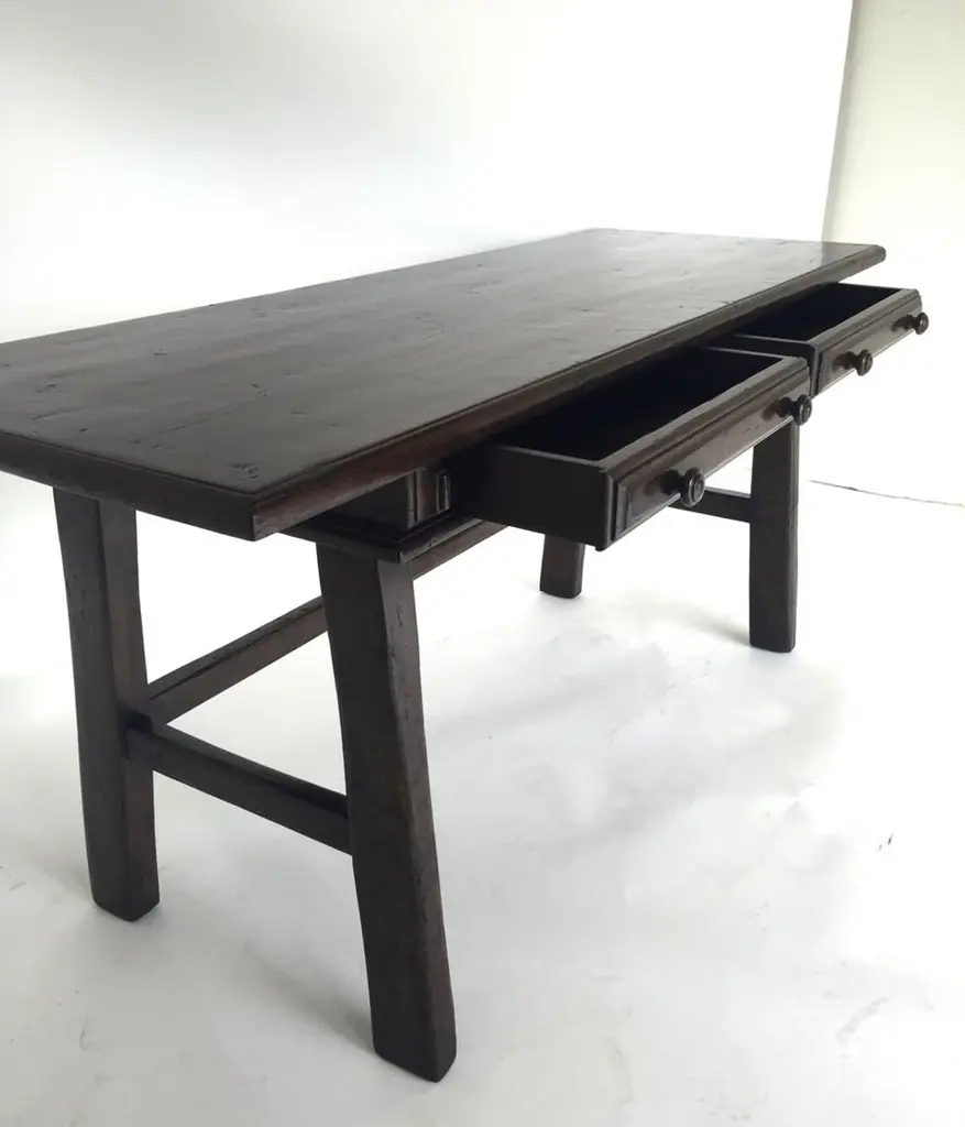 Dos Gallos Custom Walnut Wood Desk With Drawers