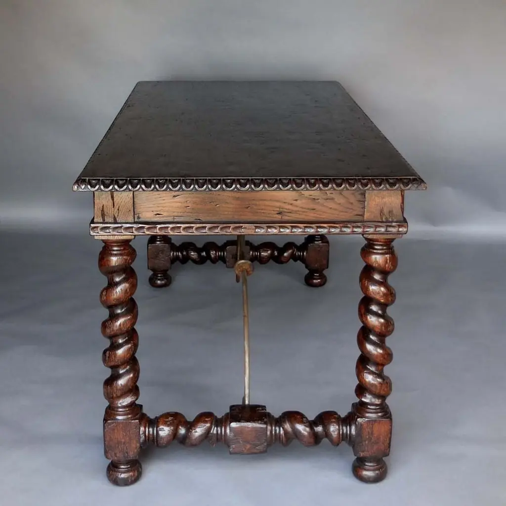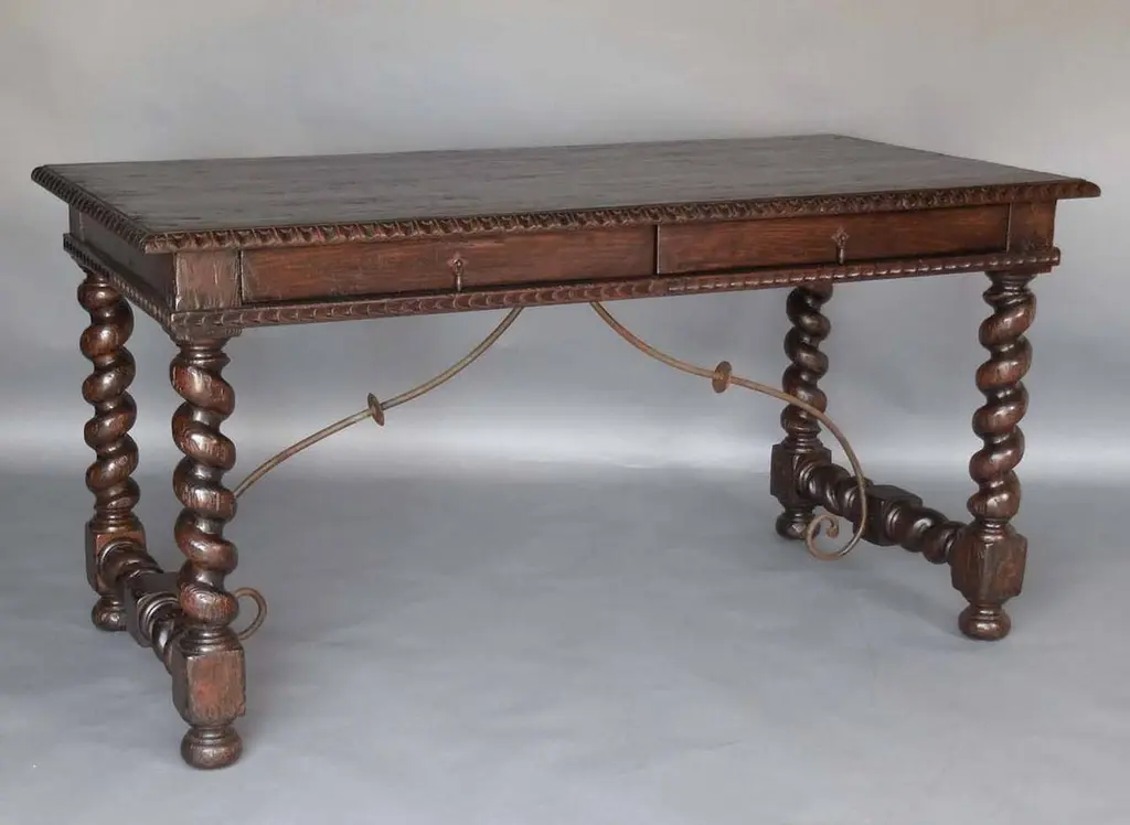 Dos Gallos Custom Writing Desk With Spiral Legs, Drawers And Iron Supports