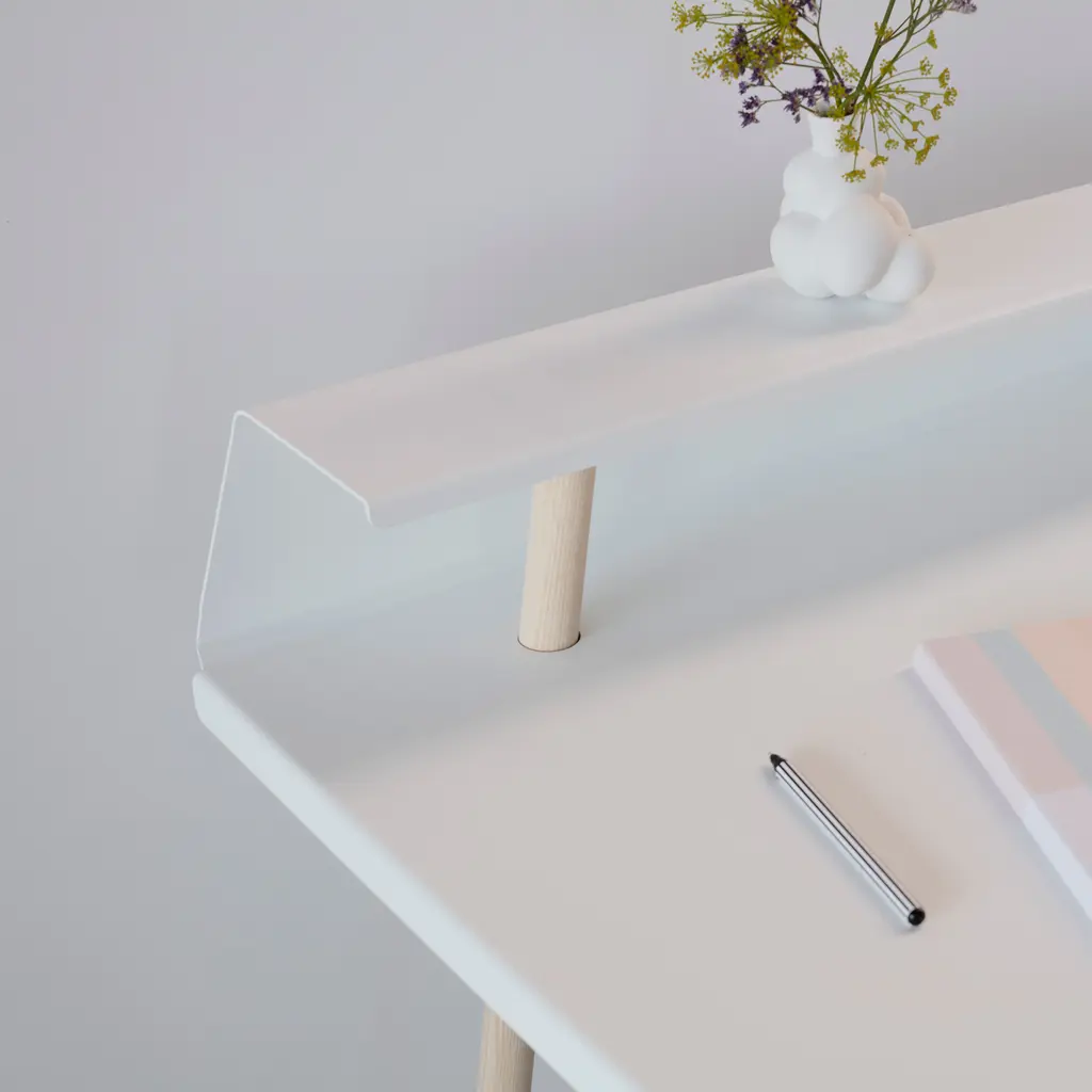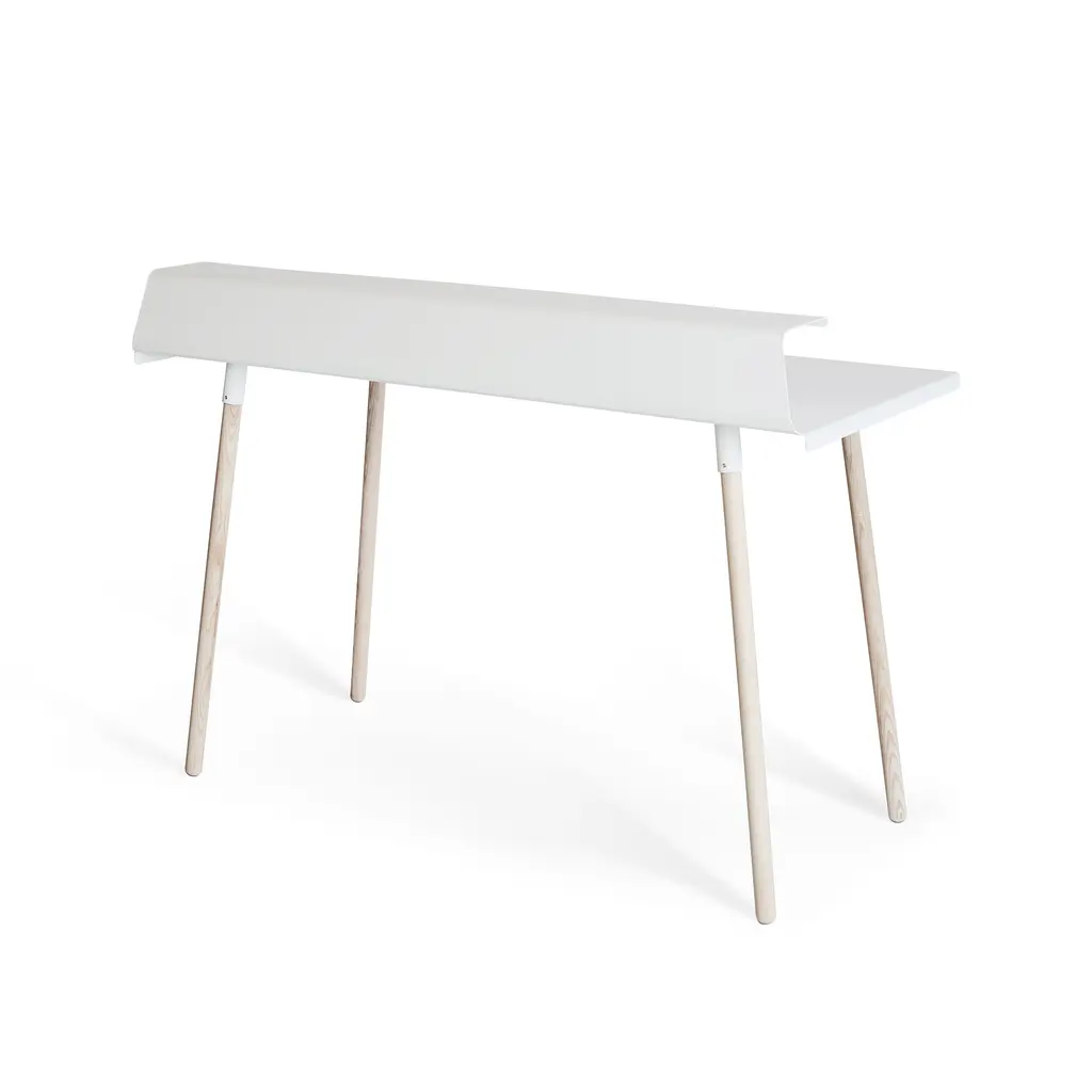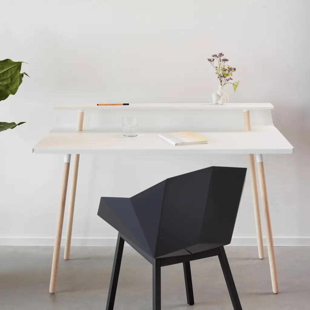 Revamp your home work space with the Double Desk from Amsterdam-based Studio Frederik Roijé. A harmonious blend of minimalist elegance and function, this desk features a curved metal top that creates a practical shelf. The nook also allows you to organize and store writing and drawing tools without having to worry about them falling on the floor. On the top shelf, there’s plenty of room for plant pots, vases, books, photos, a clock, and anything else you may need to spruce up your home office desk. Made in the Netherlands, the Double Desk features a powder-coated steel top and solid ash wood legs. Comes flat-packed for more convenience and it’s also easy to assemble without extra tools.