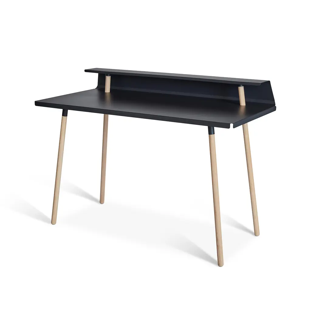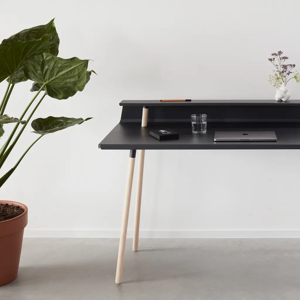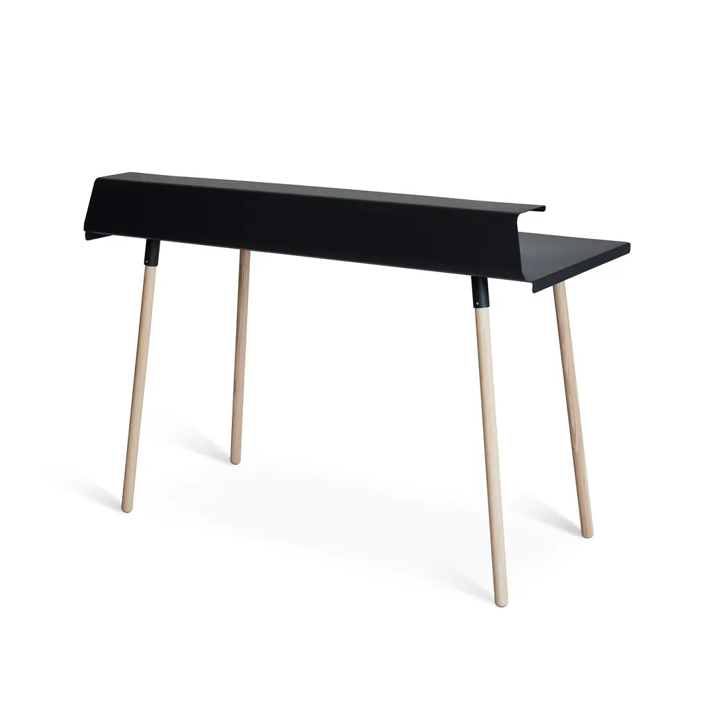 Revamp your home work space with the Double Desk from Amsterdam-based Studio Frederik Roijé. A harmonious blend of minimalist elegance and function, this desk features a curved metal top that creates a practical shelf. The nook also allows you to organize and store writing and drawing tools without having to worry about them falling on the floor. On the top shelf, there’s plenty of room for plant pots, vases, books, photos, a clock, and anything else you may need to spruce up your home office desk. Made in the Netherlands, the Double Desk features a powder-coated steel top and solid ash wood legs. Comes flat-packed for more convenience and it’s also easy to assemble without extra tools.
