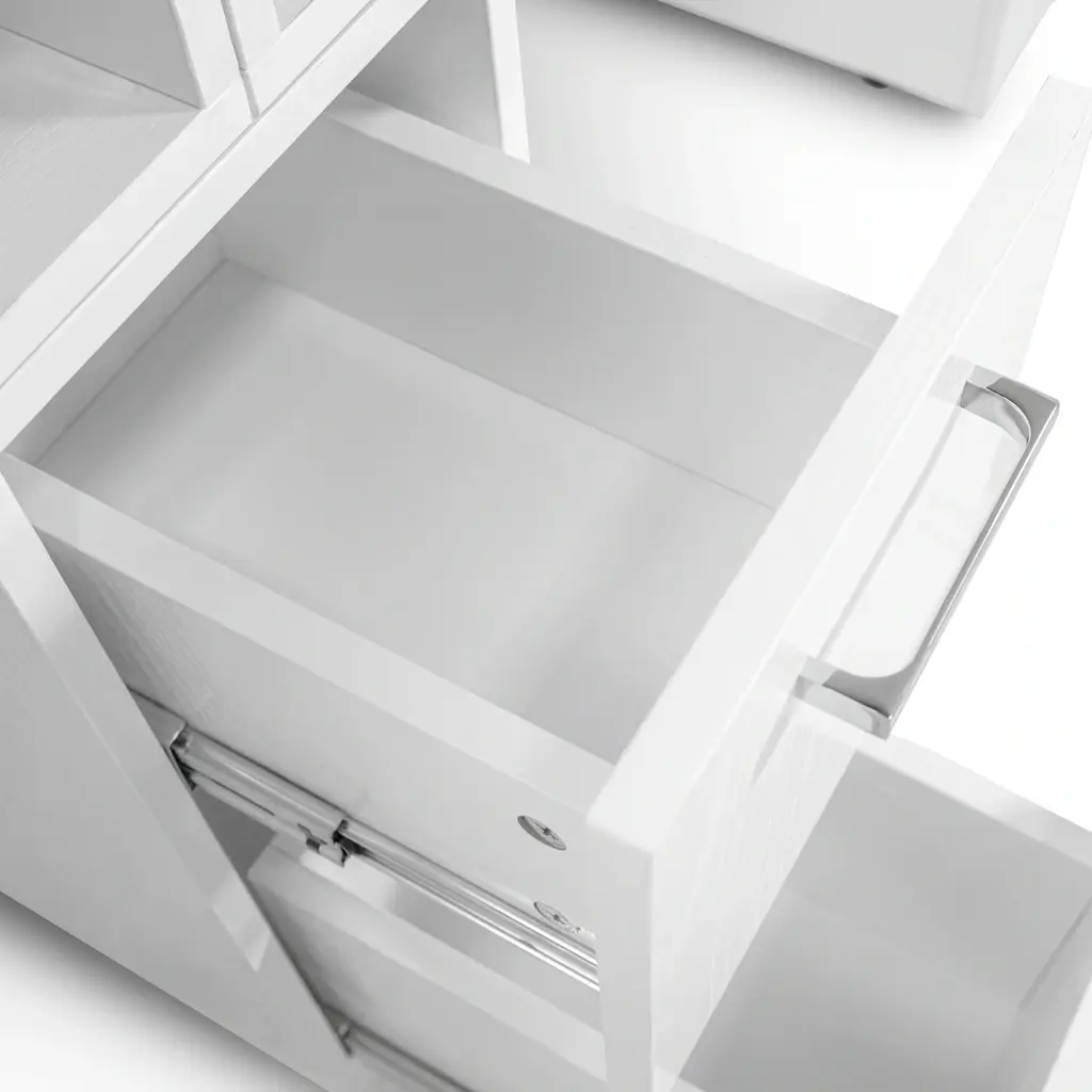MAYAKOBA professional nail salon furniture. | ★2 Central Open Drawer - Easy and quick to access nail accessories | ★5 Drawers & 3 Cabinets - Enough space to hold all nail products needed for 2 manicurists | ★Acetone-proof coating and marble top - Easy to clean | ★Table Dimension: 73.5”(L) x 17”(W) x 31”(H) | ★Tufted Front Side Cushion Panel - easy change to other colors to fit your salon interior design