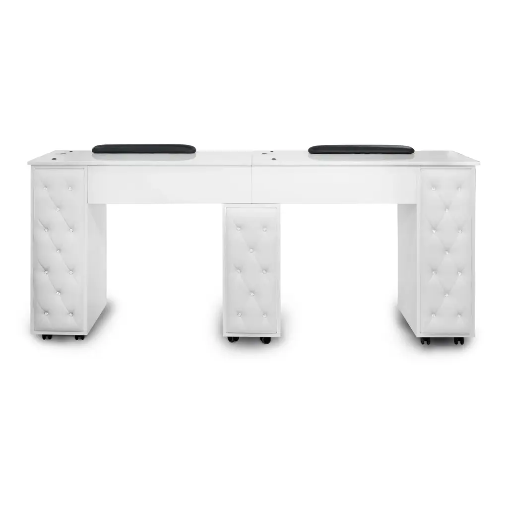 Drexel Manicure Table Double Nail Station Marble Top Desk, White Tufted Cushion - N/a - Cabinet - White