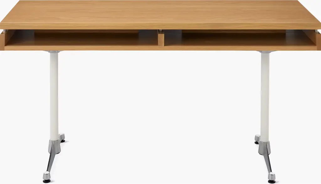 The Eames 2500 Series Executive Desk epitomizes the iterative spirit of its designers, Charles and Ray. It starts with the strong, clean T-leg design from the Eameses' 2500 Series, a range of multi-use tables that were ahead of their time when introduced in 1961. These are paired with an expansive, raised desktop, which is based on a limited-edition, custom Eames design. The result is an executive desk you can design a room around - be it the corner office or your home office.