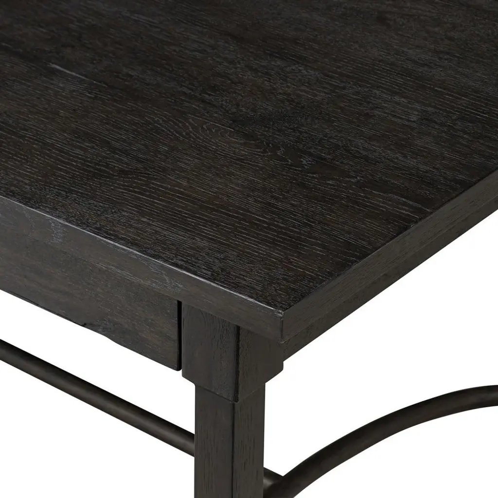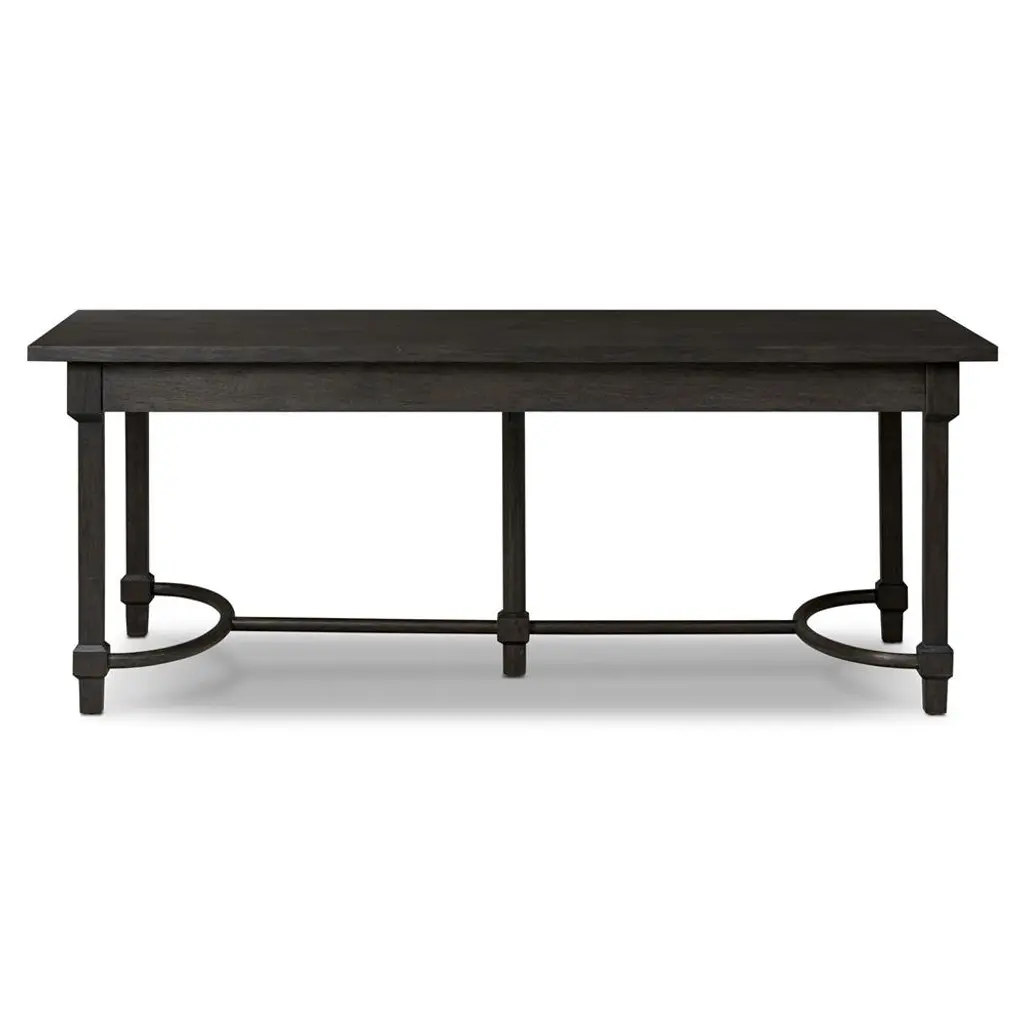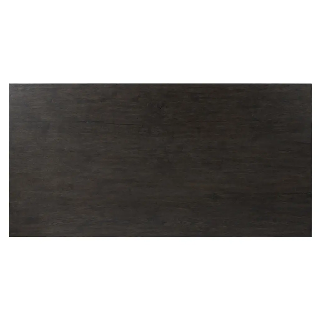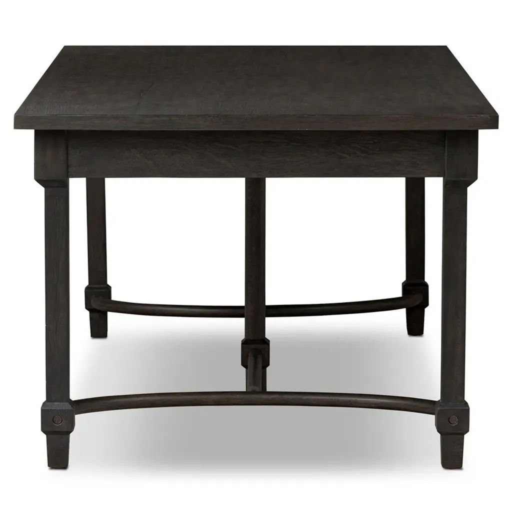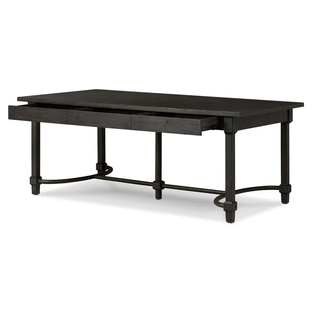 A design collaboration by Amber Lewis and Four Hands.Made from smoked black oak, this grand-scale desk meets stately presence with antique inspiration. Wood's cracks and graining craft a storied look, while built-in drawers bring storage to the modern office.