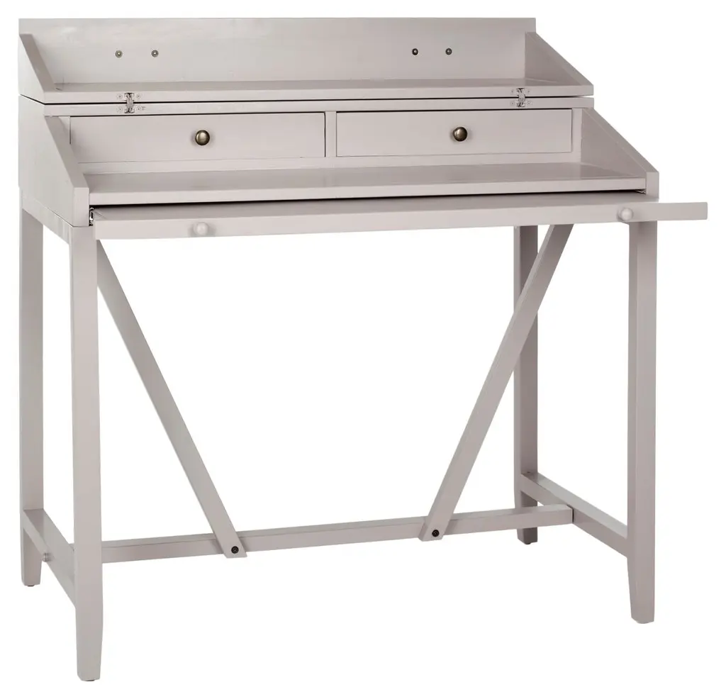 Graceful, simple, and functional, this desk has two drawers, a shelf, and a pull-down writing surface. It's perfect for transforming a corner of a bedroom, den, or even dining room into a home office.