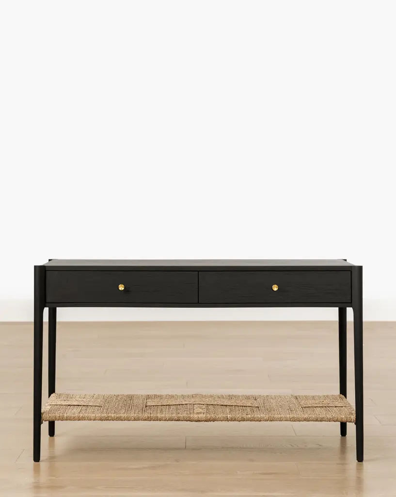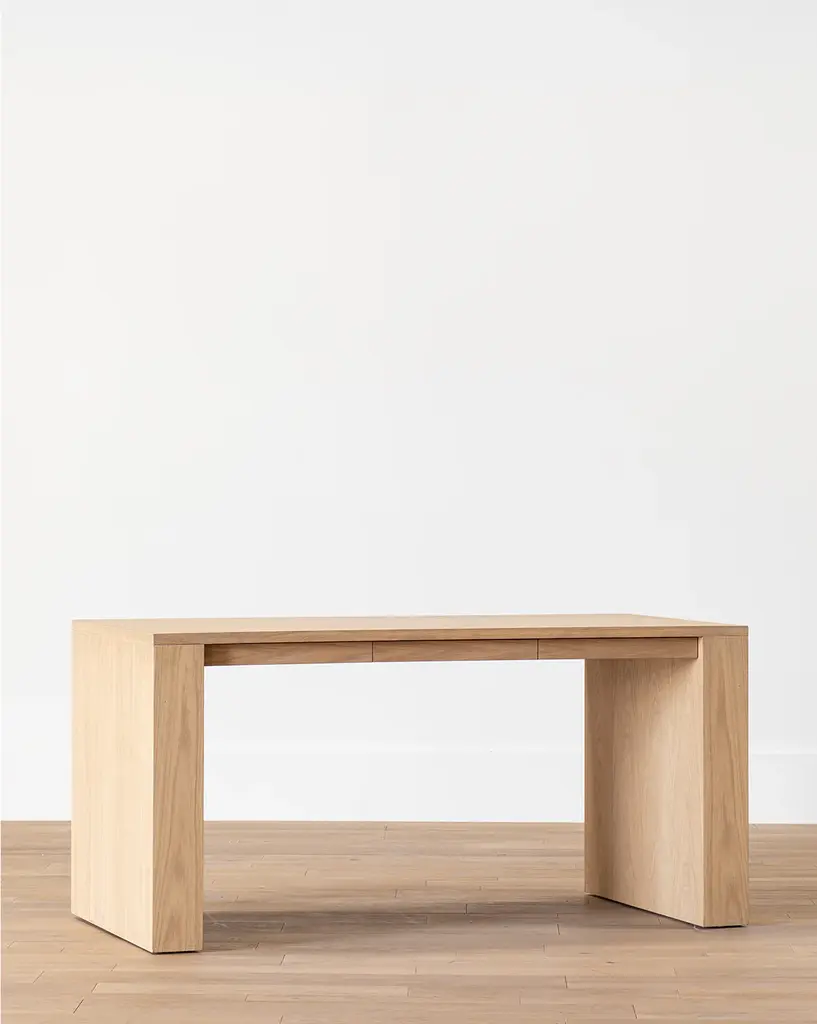 Bold yet understated, the Elson Desk makes the most of a simple waterfall frame in its Scandinavian-inspired design. With a subtle drawer tucked beneath its tabletop and an all-over finish, this piece can float in any office and lends a refined, elegant feel.