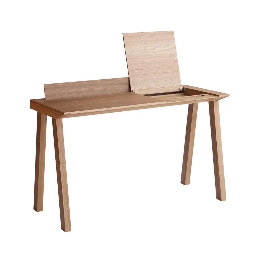 Along with its trim dimensions and airy inviting style, Ernest is a marvel of organization, with a desktop lid revealing a hidden stash for stationery, work tools and keepsakes as well as a backstop for standing up a journal or tablet. Borja Garcia’s design for Punt comes in a range of oak and walnut finishes and a nook underneath and slots allotted in the back legs also keep cords neatly controlled.