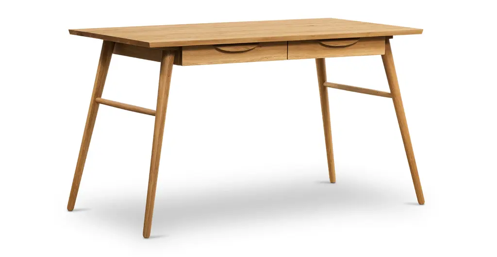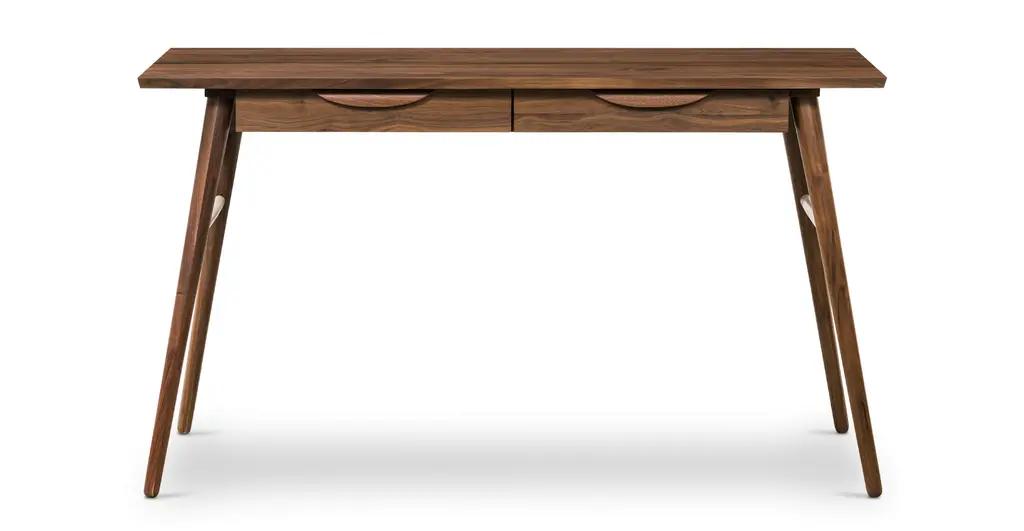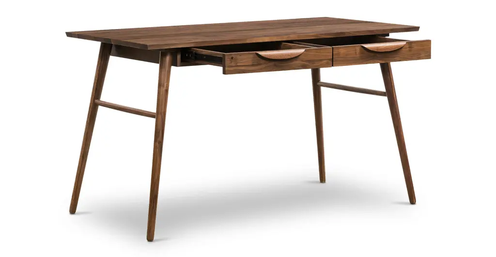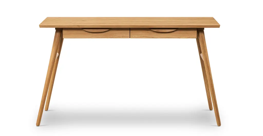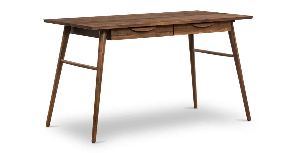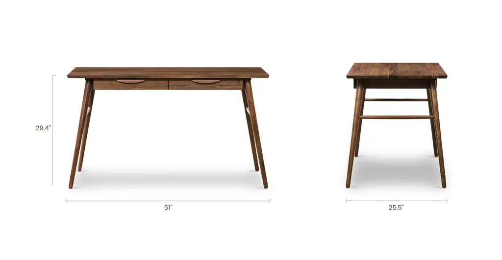 The naturally good-looking solid wood grains of the Etta Office Desk would like to meet your acquaintance. With double drawers that offer up tons of storage space for your office must-haves, and a large desktop for your computer and an air-purifying plant, this desk intends to give you the space you need to get stuff done. Angled, tapered legs lend this solid wood desk a midcentury modern-esque feeling you’ll love.
