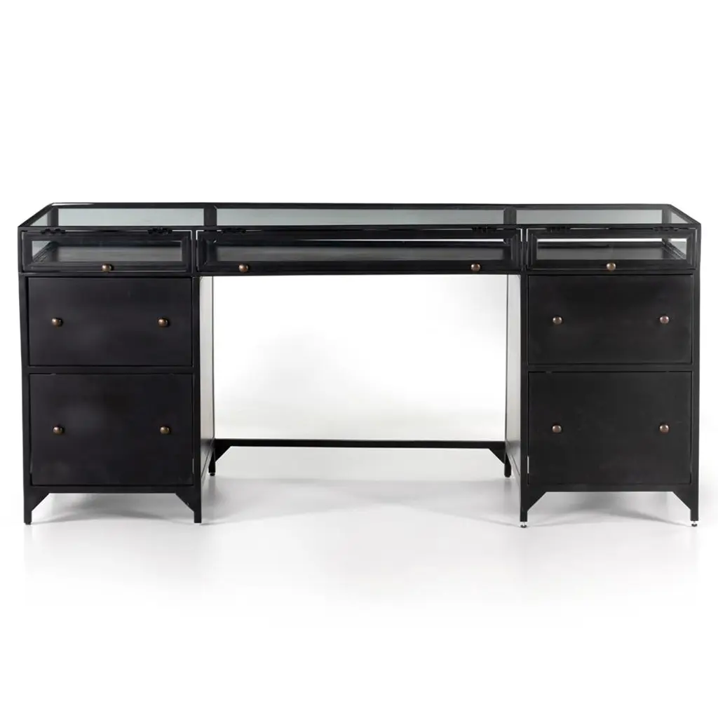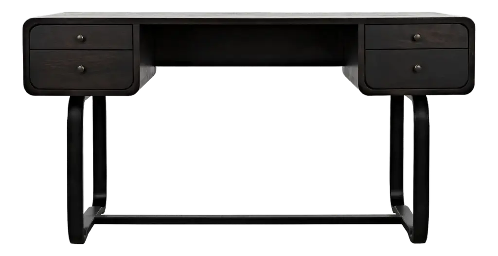 Euclide has a light look, thanks to its thin top and chests of drawers in black maple supported by only two black-painted steel ribbon legs. Euclide is designed to be used from both sides since it has four drawers with traditional guide rails on each side. This desk is equally suitable for being used in a study or a bedroom. Please contact the Concierge for other information.