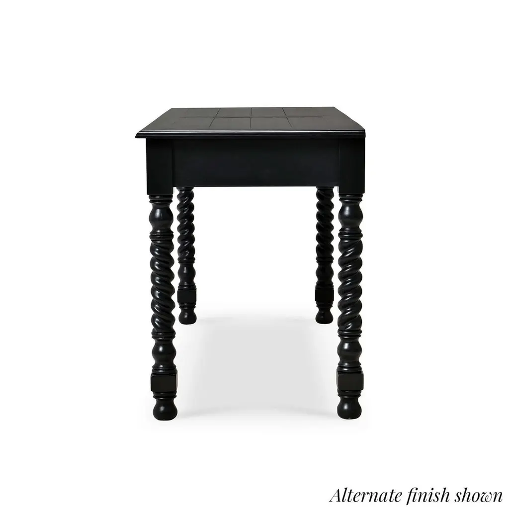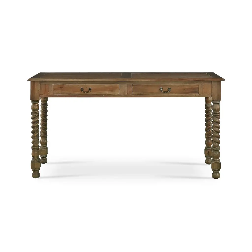 Exquisitely designed to blend elegance with functionality. Crafted from high-quality mahogany wood and finished in our straw wash, this desk is a perfect addition to any home or office. Its beautifully carved barley twist legs add a distinctive European flair. With generous dimensions, this desk provides plenty of space for your computer, documents, and office supplies. Dimensions: 59" W x 24" D x 31" HCustom finish options are also available. Contact us to learn more.