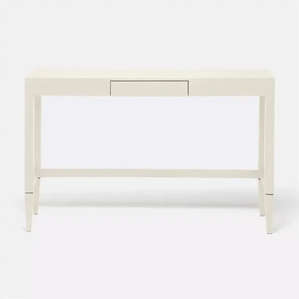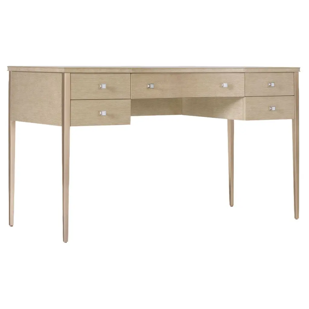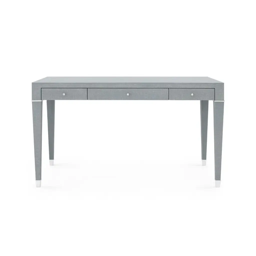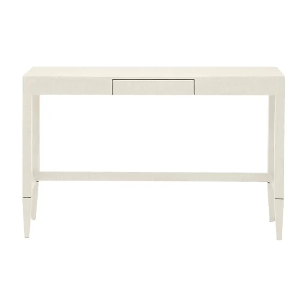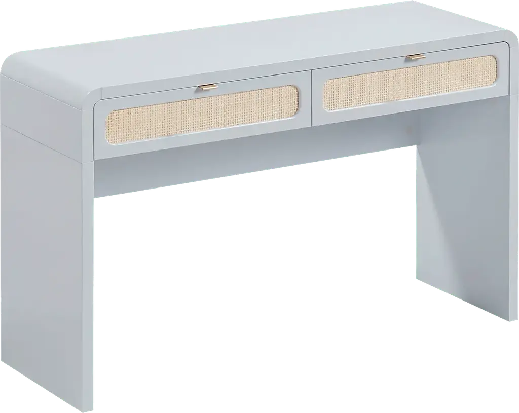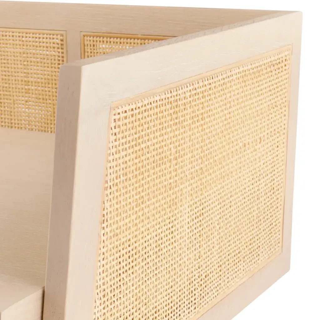 The Evan Collection is a modern minimalist's dream come true. Combining inspiration from Scandinavian and Japanese design, this collection is simple, clean, and uses an elegant combination of natural materials. Each piece is comprised of straight-grain Bleached Cerused Oak and Bleached Cane Panels. The desk has three drawers with veneer interiors and soft closing glides. At the back center of the desktop, there is a small rectangular hole through which you can hide any unsightly cables. Designed with a lip under the drawer rather than a metal pull, there's no extraneous hardware to conflict with the natural, simple, and elegant appeal of the piece. The Evan Desk is a beautiful addition to any living room or office.