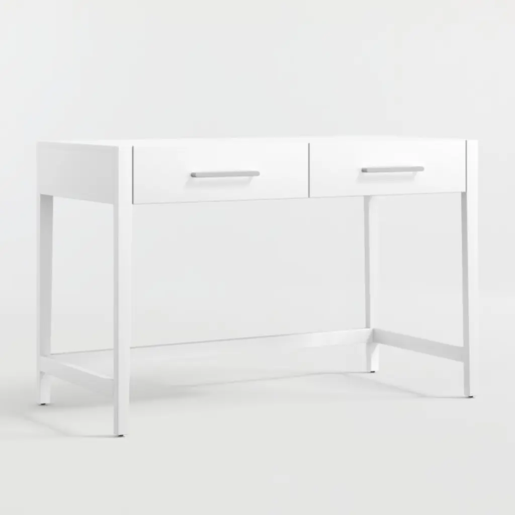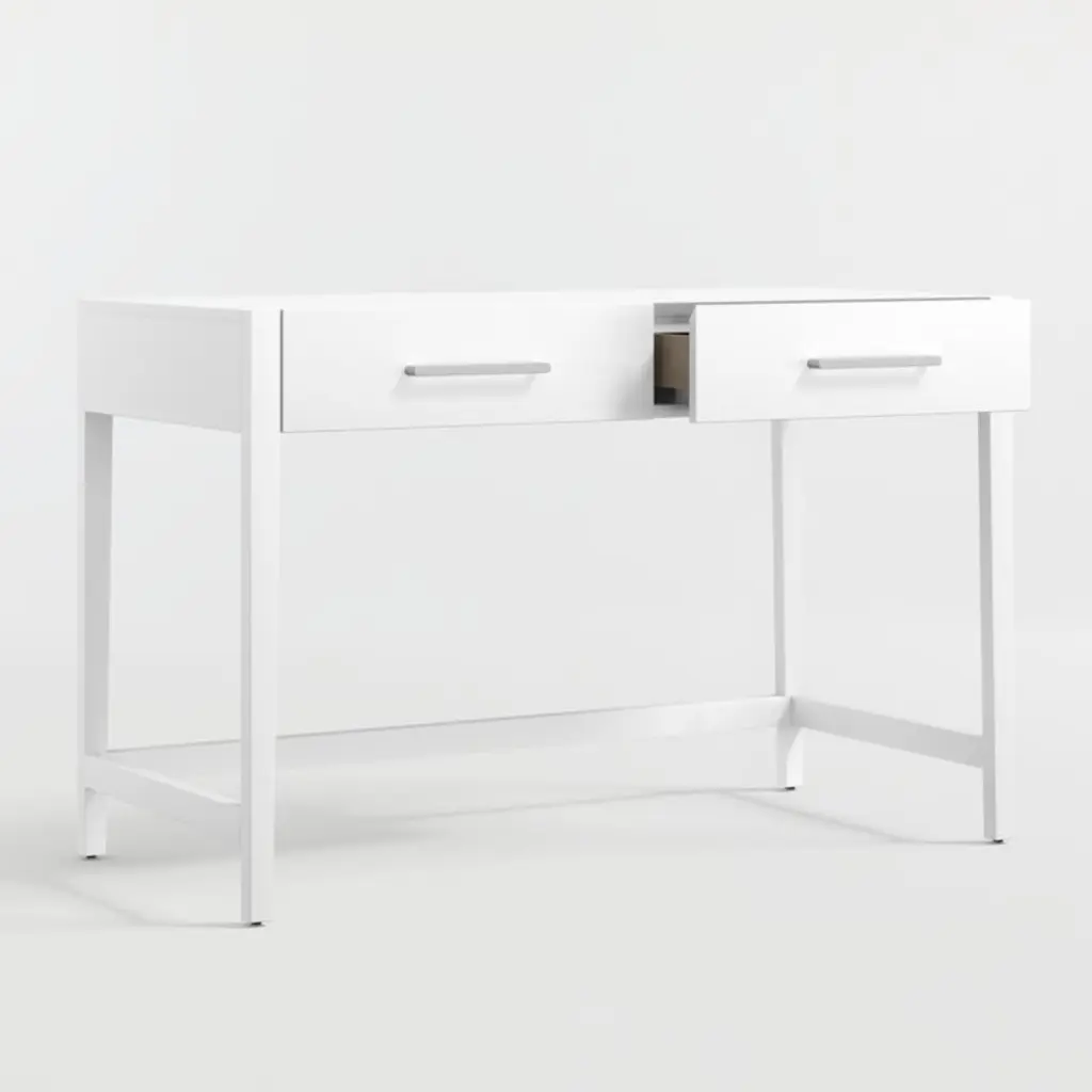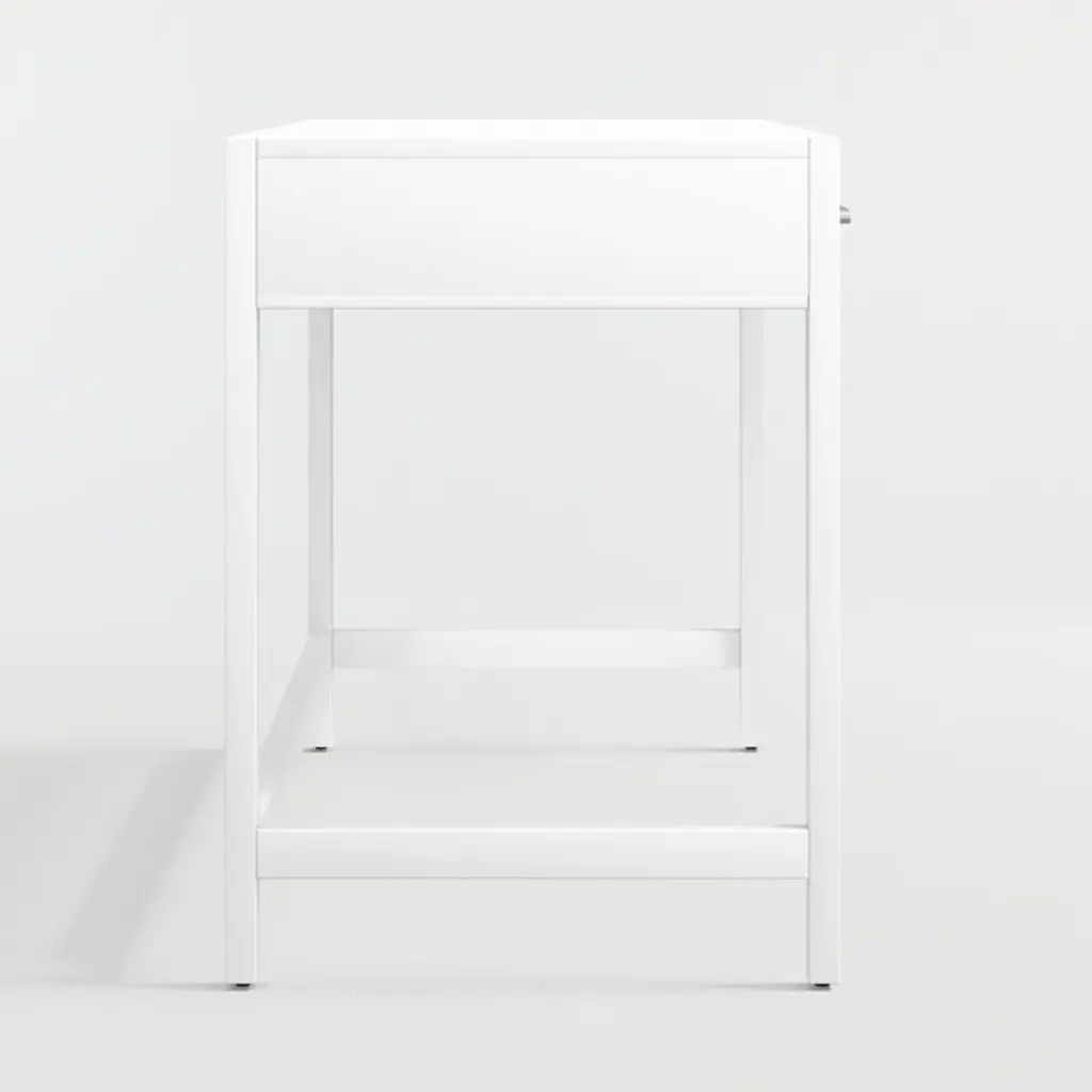Designed with versatility and value in mind, our Ever Simple White Desk is defined by clean lines and effortless style. Its solid construction and generous surface area give it plenty of longevity, and its two smooth-gliding drawers are perfect for tucking away school and art supplies. Pair with other pieces from our modular Ever Simple collection to create a custom look.