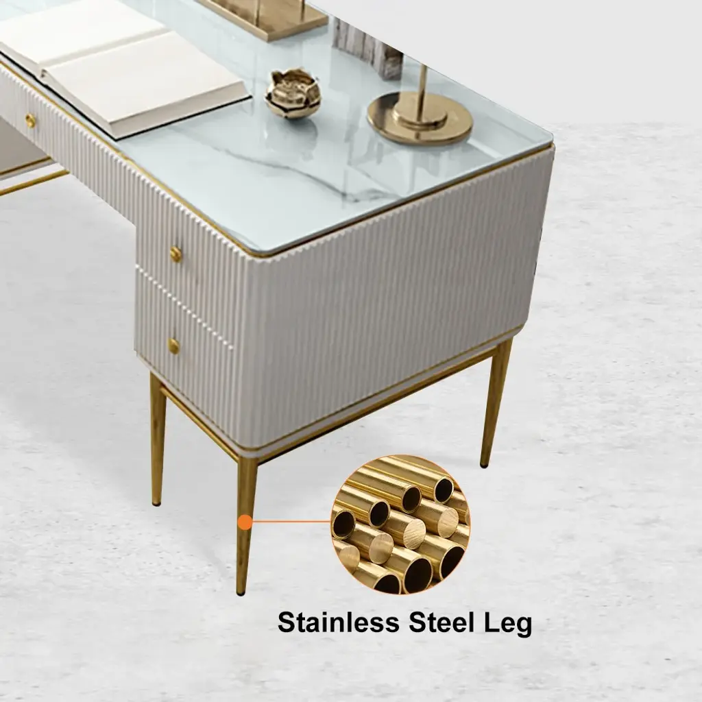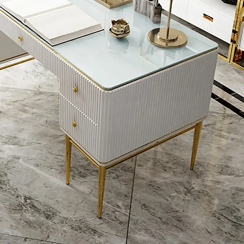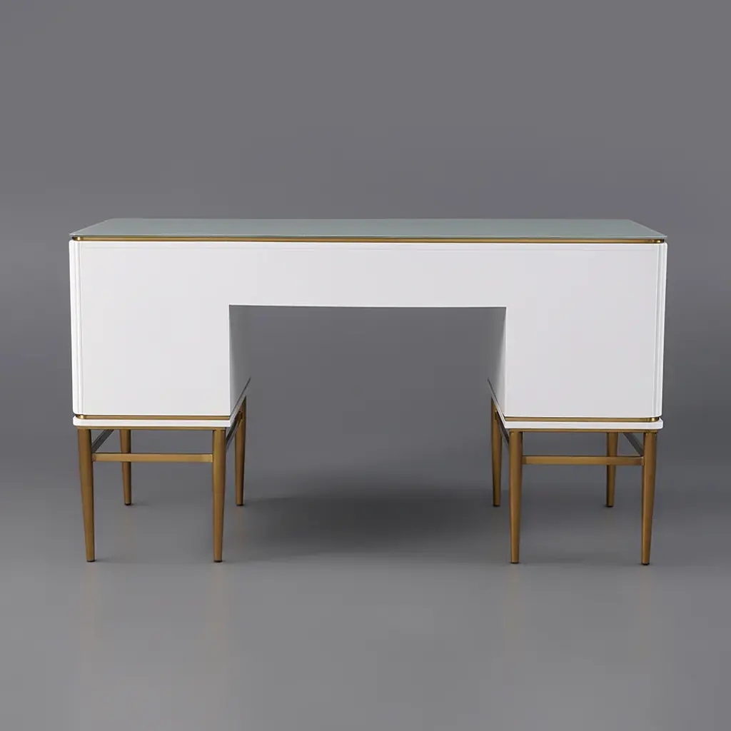 Elevate your workspace with this 55.1" executive desk, combining premium materials including solid wood, engineered wood, and tempered glass for lasting durability. The sleek white finish and stainless steel accents create professional elegance, while abundant storage keeps your office organized. Perfect for executives who value both style and functionality in their workspace.