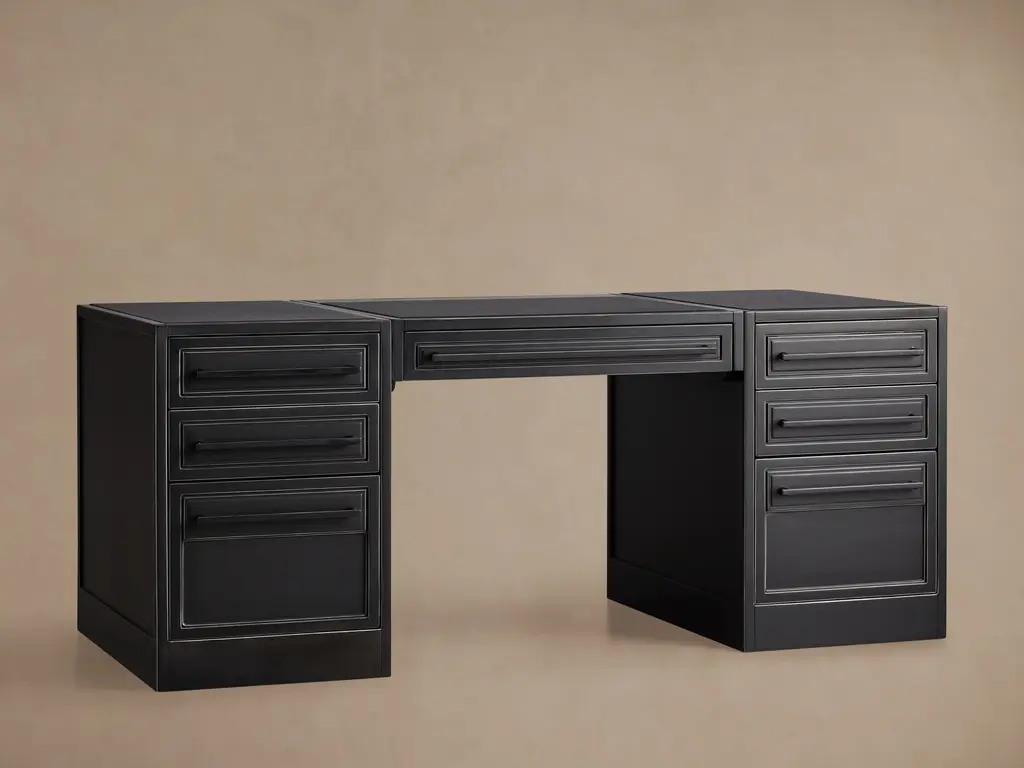 Inspired by the doors of our favorite French antique shop, our Factory Collection is crafted with contemporary style and industrial charm. Factory’s expansive workspace features a leather writing surface for elevated style, and ample drawers mean plenty of storage for everyday essentials.
