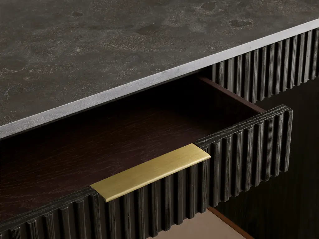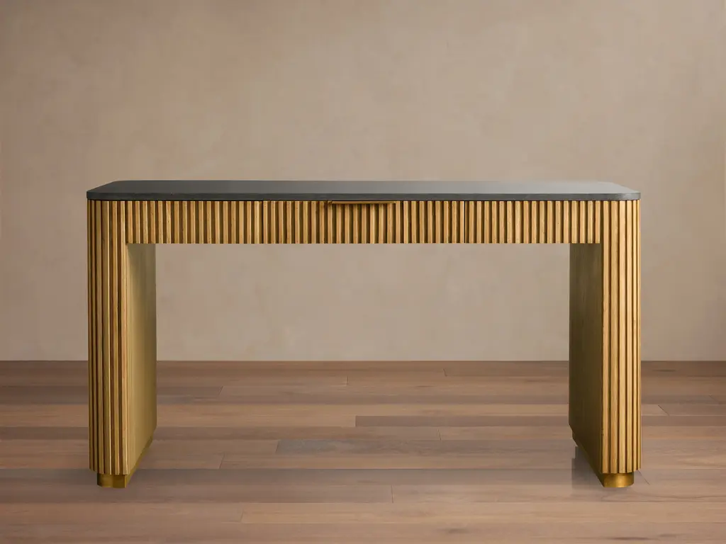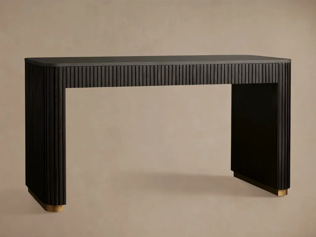 Our Finnley Writing Desk showcases a stunning mixed-material design that invites elevated style into any office space. Hand-finished pine from Finland or white oak wood is luxuriously complemented by stone tops, accented by zinc-alloy and reeded oak detailing. The result is an eclectic-yet-chic office collection that will inspire your most productive days.