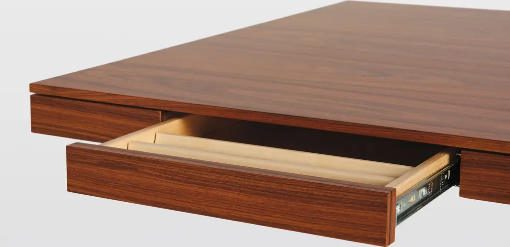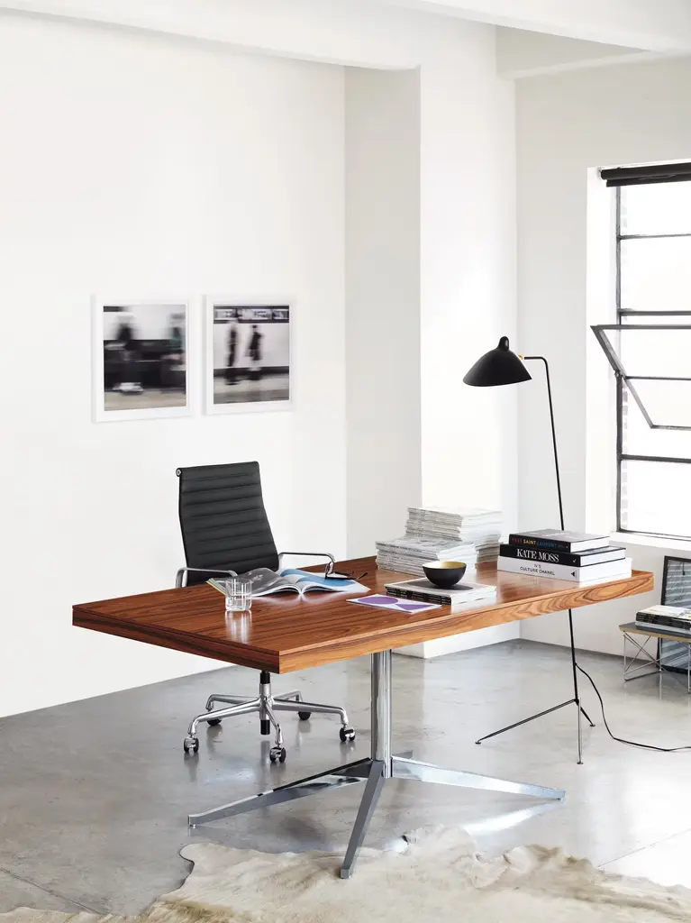 When Florence Knoll couldn't find a piece she needed, she designed it herself. Believing that an executive's desk should be a tool to facilitate communication, she designed her pedestal-base Executive Desk (1961), first known as Model 2485, to serve as both a desk and table in order to promote collaboration. The final result is a sleek, spacious desk with a slim rosewood top, pencil drawers, and a sturdy steel base.