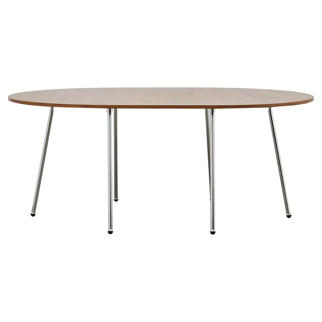 Florence Knoll described her designs as the meat and potatoes, the fill-in pieces which had to be provided. "I needed the piece for a job and it wasnt there, so I designed it." While this may have been the motivation for the 1961 Table Desk, the perfectly proportioned and flawlessly detailed result is anything but a fill-in piece.FEATURESTable Desks are available as oval tables. KnollStudio logo and Florence Knoll's signature are stamped into base of table.CONSTRUCTIONFrame and legs heavy gauge welded steel.FINISHESBase available in polished or satin chrome.Top available in veneer finishes.
