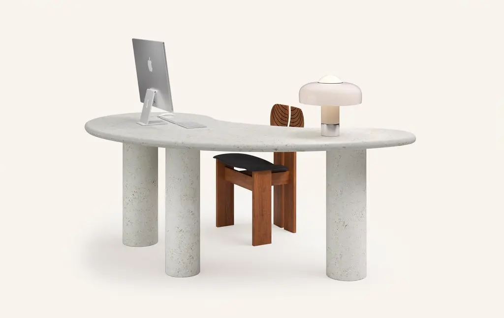 Form(la) Lago Freeform Desk 72”l X 36”w X 28”h Limestone Oceano