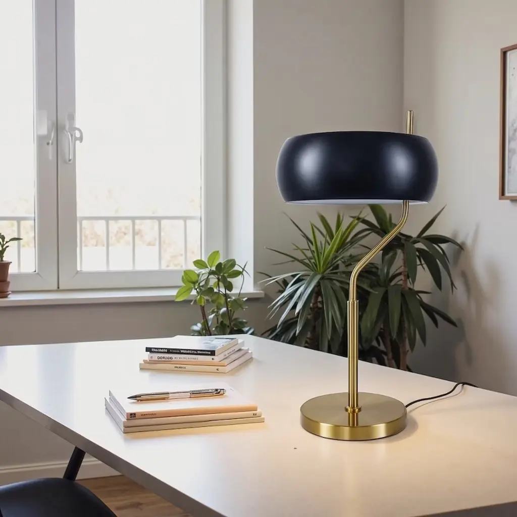 Fortune Candy E26 Modern Black And Gold Table Lamp With Ceramic Fixture, Elegant Desk Light For Home Or Office