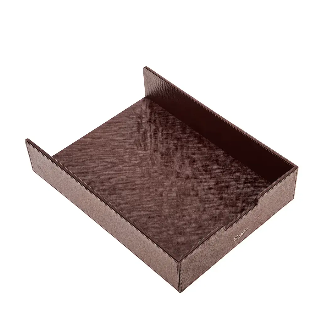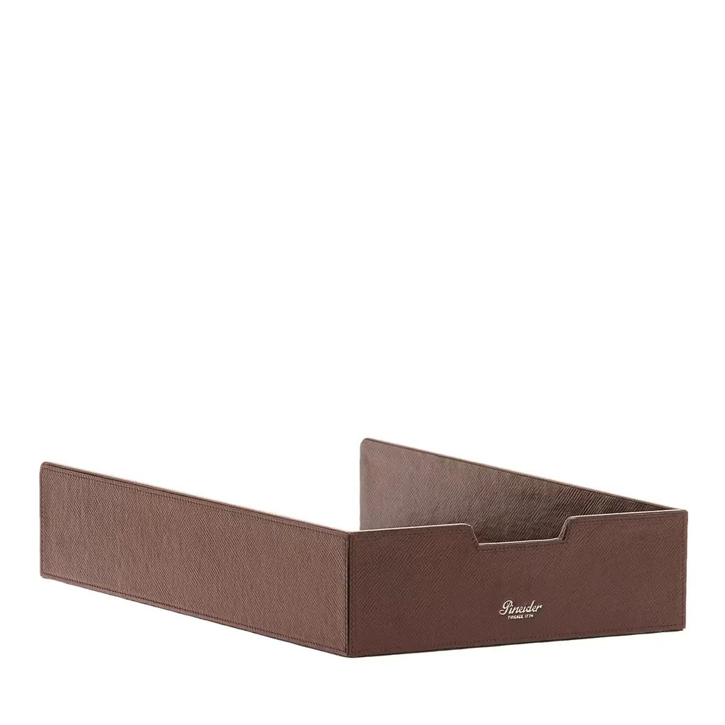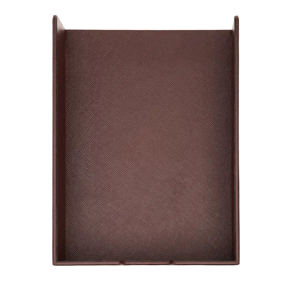 Designed to bring order and refinement to your workspace, this brown leather document holder merges a clean, structured form with a tactile richness. The open-front design ensures effortless access to files, while its finely textured leather finish lends a sophisticated touch to any office setting. A testament to craftsmanship, it turns everyday organization into an expression of understated elegance, enhancing both the functionality and visual harmony of your desk.