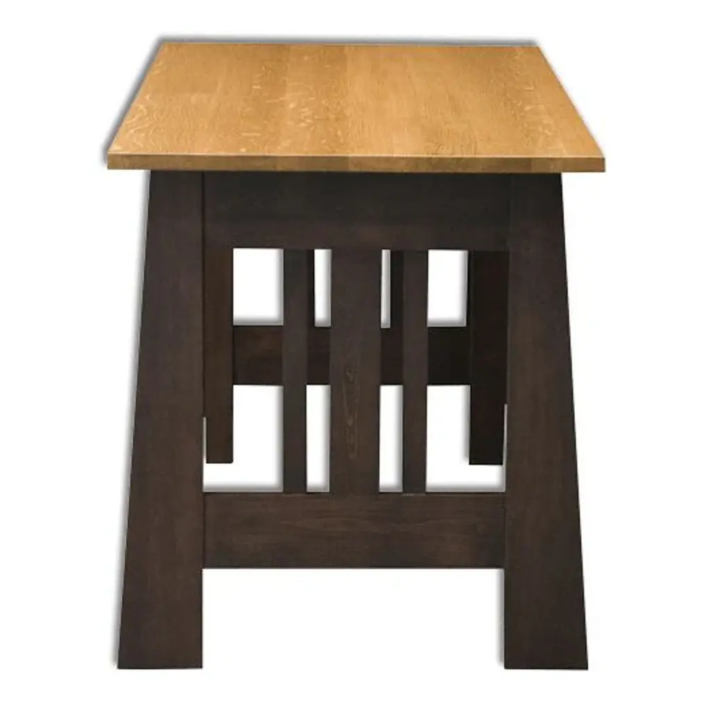 The Amish Freemont Mission Open End Desk updates the decades old Mission furniture movement. Clean lines, flaring legs, flush closing drawers and inset panels complete the Southwestern Mission look.