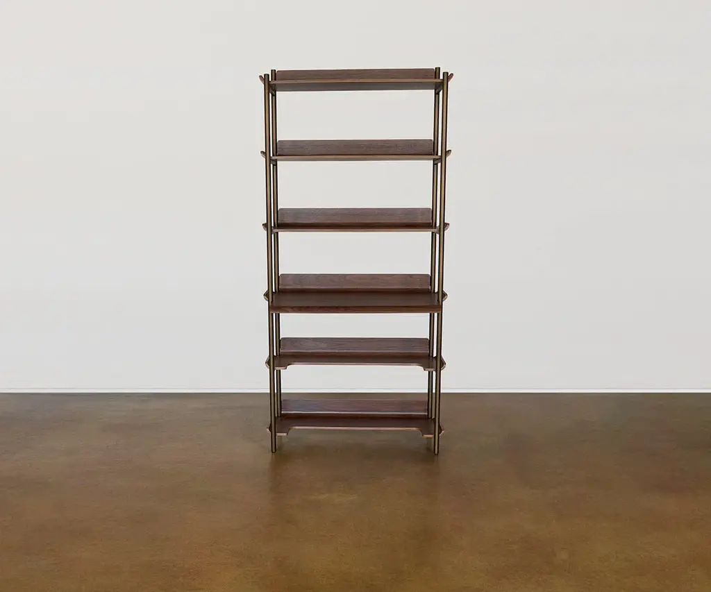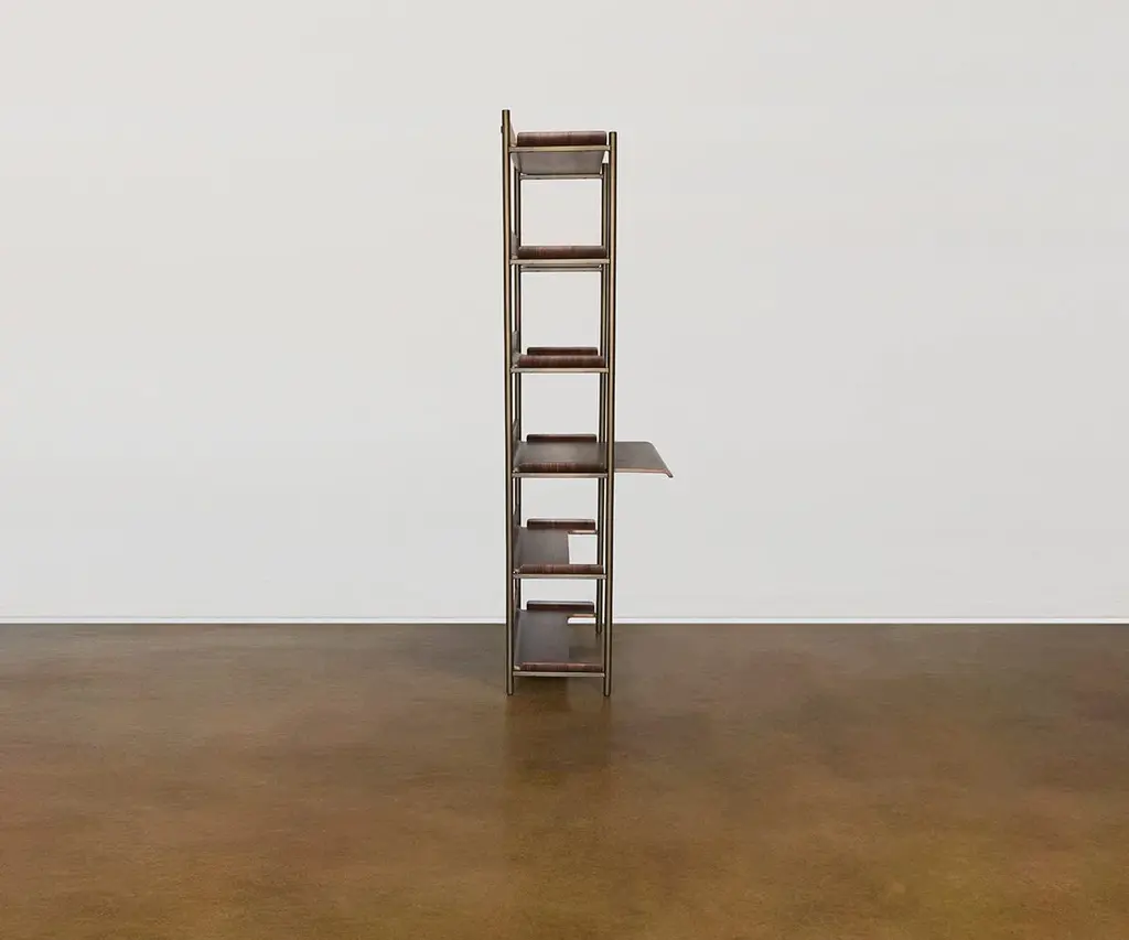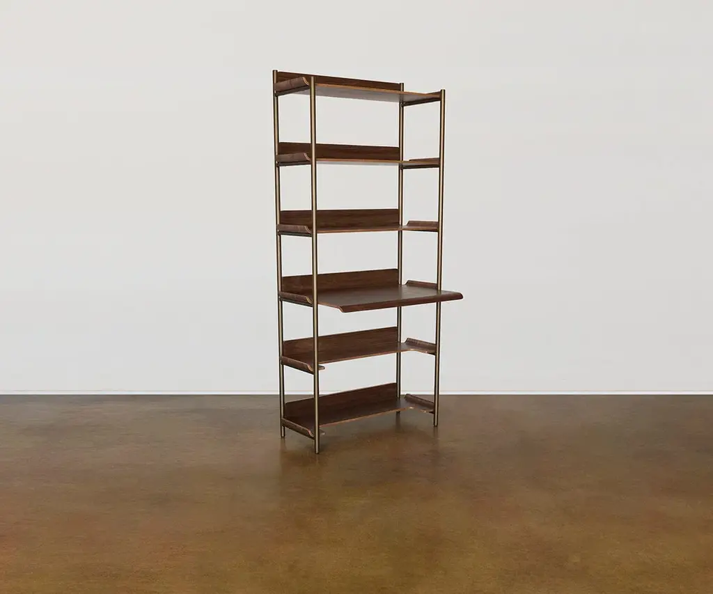 Convenient and highly versatile, the Freya Shelves with Desk is the ultimate multitasker, combining walnut veneer and black metal for a modern look that complements any decor style.