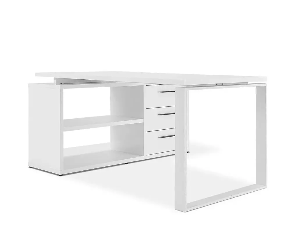 Select the Gammel Desk with Reversible Return to create an attractive work environment that sparks creativity and encourages productivity. Organization and storage come easily thanks to ample surface space and three easy-access drawers that combine with an open cabinet for streamlined organization. Made in Italy from eco-friendly recycled materials, this piece features white high-gloss drawer fronts that pair with matte white metal legs. Equip your office with this piece for a blend of modern style and neutrals that fit with myriad decor themes. The melamine surfaces of this piece are designed to mirror the look of real wood complete with intentional, rustic saw marks. Made in Italy from 100% recycled eco-friendly materials, this piece was deliberately produced with minimal environmental impact.