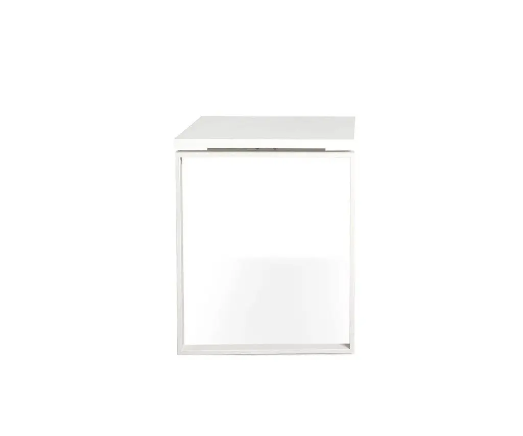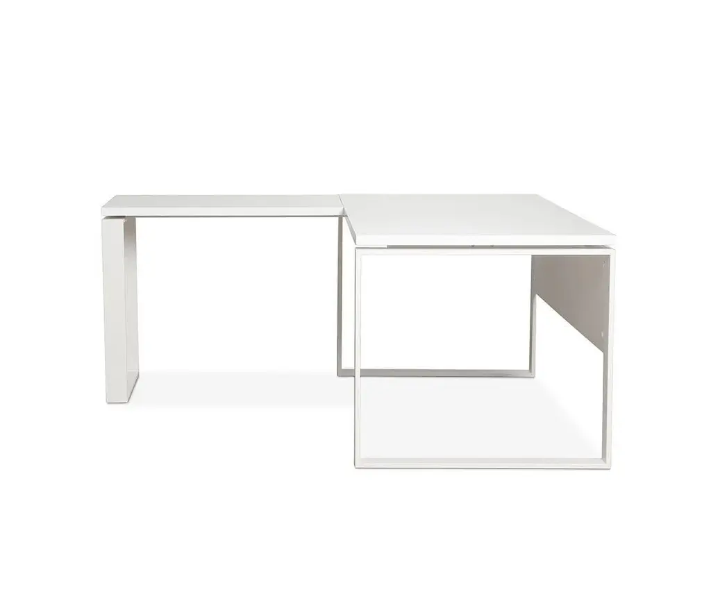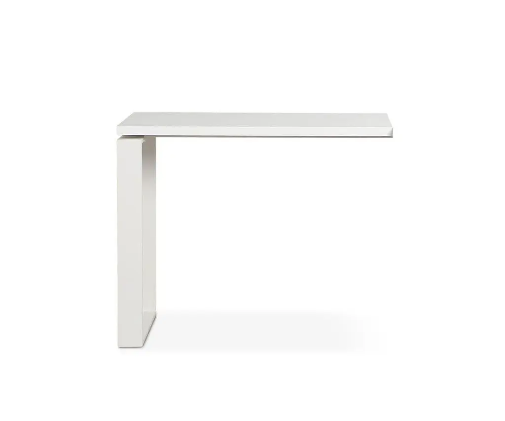 Add the Gammel Return in white to your Gammel Desk in order to expand your workspace. Made in Italy from eco-friendly recycled materials, this ingenious design attaches to either the right or left side for your convenience. Matte white metal legs support the smooth high-gloss top and for a cohesive look that allows this piece to blend effortlessly with the modern aesthetic of the collection. The melamine surfaces of this piece are designed to mirror the look of real wood complete with intentional, rustic saw marks. Made in Italy from 100% recycled eco-friendly materials, this piece was deliberately produced with minimal environmental impact.