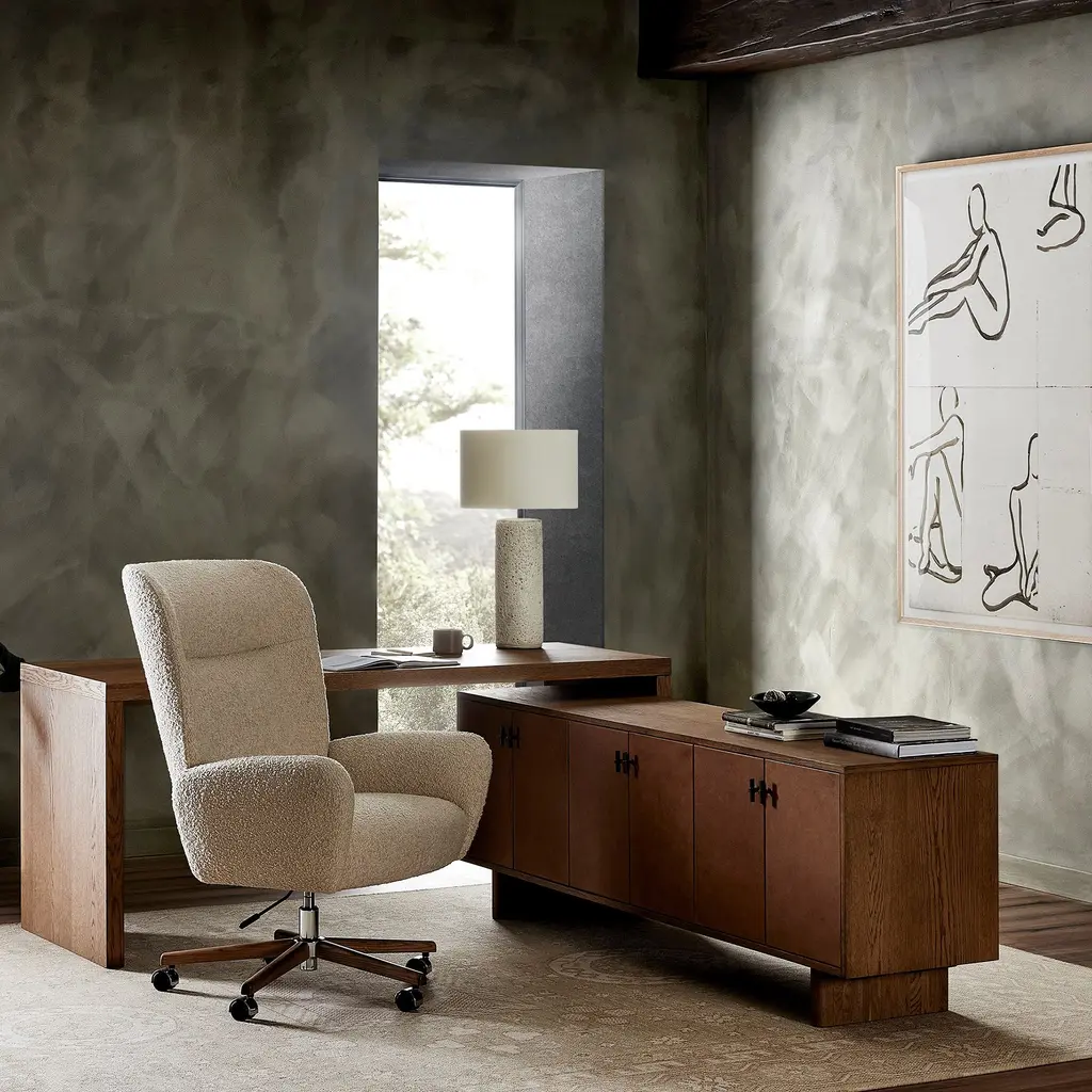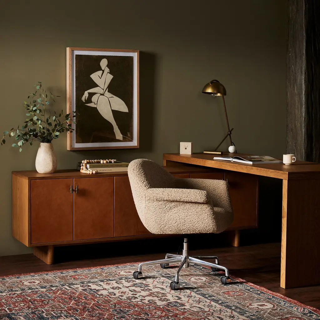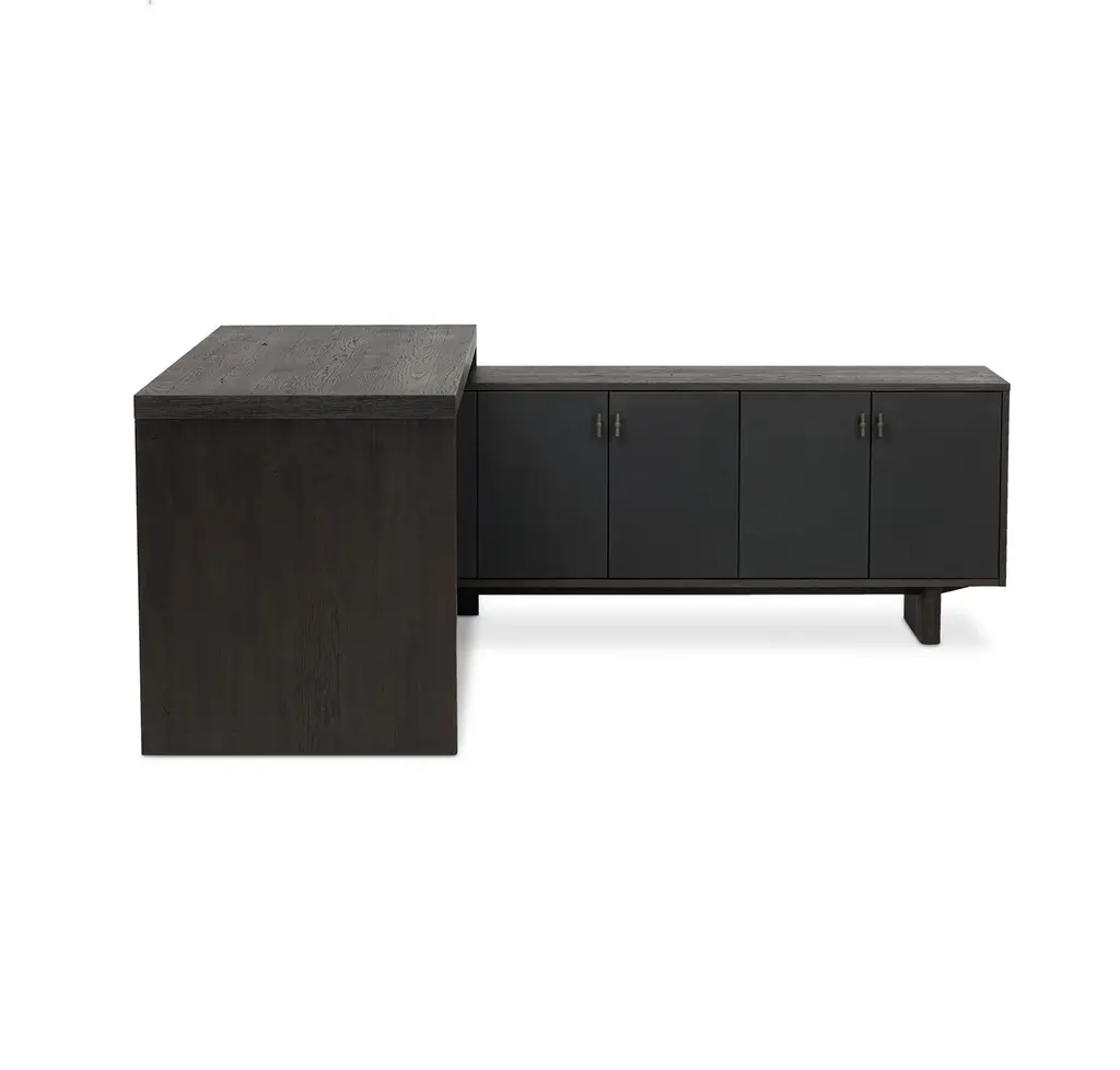Elevate your everyday work space. Functional storage with modular style. Leather doors add character and charm.
