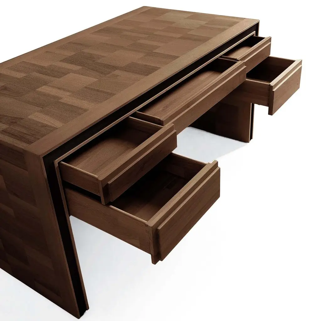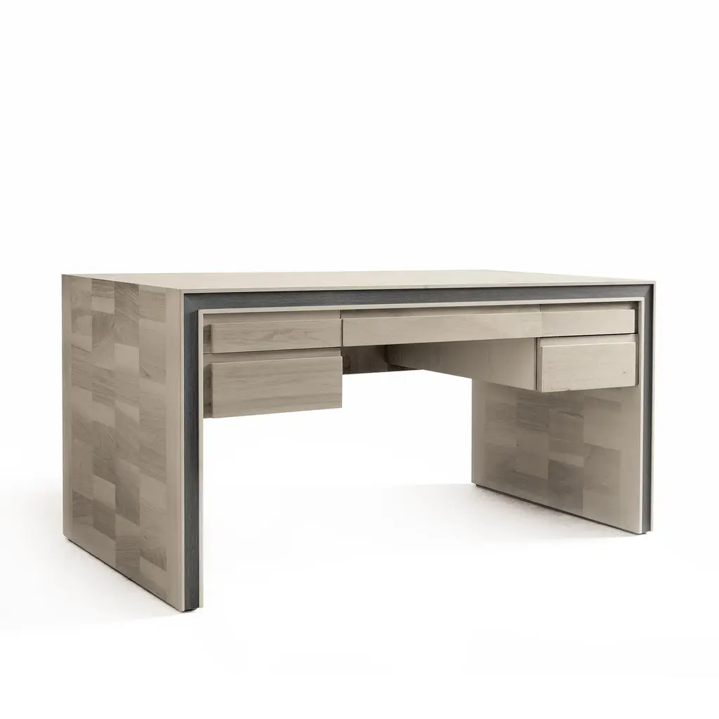 Gentile Writing Desk by Dale ItaliaDimensions: D 80 x W 158 x H 76 cm.Materials: Walnut.Writing Desk in solid Canaletto walnut with five drawers. Available in grey or natural walnut finishes. Prices may vary. Please contact us.The craftsmanship of the artisanDale Italia's creations result from the great expertise of our team of master craftsmen who have been working with passion and dedication in our company for years. We hand-finish one piece at a time with the utmost care and attention to detail. We customize each piece of furniture according to the individual needs of each project.The raw material, solid wood, is at the heart of our business and becomes the protagonist in every piece of furniture signed by Dale Italia. Furniture is sustained by a thorough knowledge of wood, and the ability to work and interpret it to its full potential. Thus, it is born a long-lived product of strong quality in every detail, enriching life and gratifying the senses, which can lend itself to recycling, reuse, and last for generations, to be lived in and used in today's and tomorrow's homes. We offer a variety of woods such as walnut, oak, and alder, declined in oil or natural finishes, as well as leather and fabrics of Italian origin.