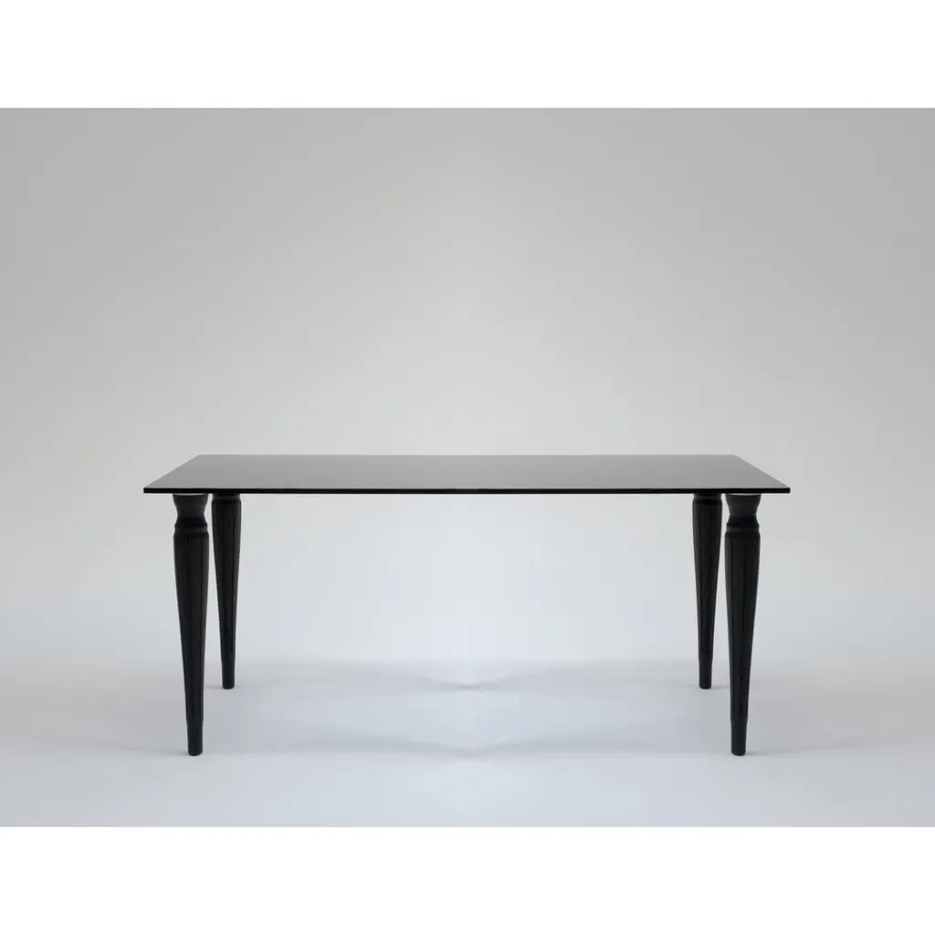 Glenn Desk Table by VUUN ITALIADimensions: D 80 x W 180 x H 72 cm. Materials: Black glossy glass and lacquered oak.Available in different finishes and sizes. Please contact us.VUUN Italia creates infinitely customizable Design products designed to furnish the most refined environments. Industry and craftsmanship come together, resulting in a production totally MADE IN ITALY, as well as the fruit of the knowledge of master glassmakers and wood craftsmen in the Milan area.The study and design of the products is taken care of by Italian designer Andrea Petterini, while the name VUUN originates from the term "vün," which in the Milanese parlance means "one."
